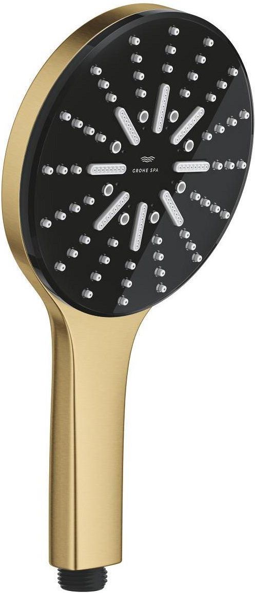 Grohe słuchawka prysznicowa 3 strumienie brushed cool sunset 101676GN00 O PRODUKCIE akrylowa tarcza natrysku, czarna strumień GROHE Rain, Rain+ i ActiveMassage GROHE SmartTip wybór strumienia natrysku przez naciśnięcie pierścienia na słuchawce GROHE EcoJoy mniejsze zużycie wody maksymalne natężenie …