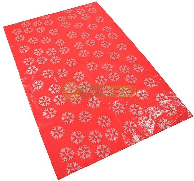 Czerwona torba świąteczna w płatki śniegu idalnie sprawdzi się do pakowania prezentów pod choinkę o dużych gabarytach takich jak nartosanki czy ślizgi. Wymiary: 128 cm x 80 cm.