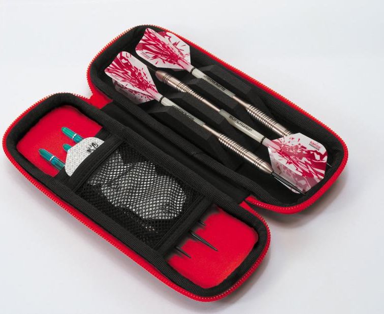 Kompaktowy pokrowiec o sztywnej konstrukcji. Specjalnie profilowane przegródki z pianki, w których można przechować 3 w pełni zmontowane rzutki. Wewnątrz przegroda z siatki Wykonany z wodoodpornego materiału. *Wyposażenie nie wchodzi w skład zestawu. Interesują Cię akcesoria do gry w darta? Zobacz, co jeszcze dla Ciebie przygotowaliśmy!