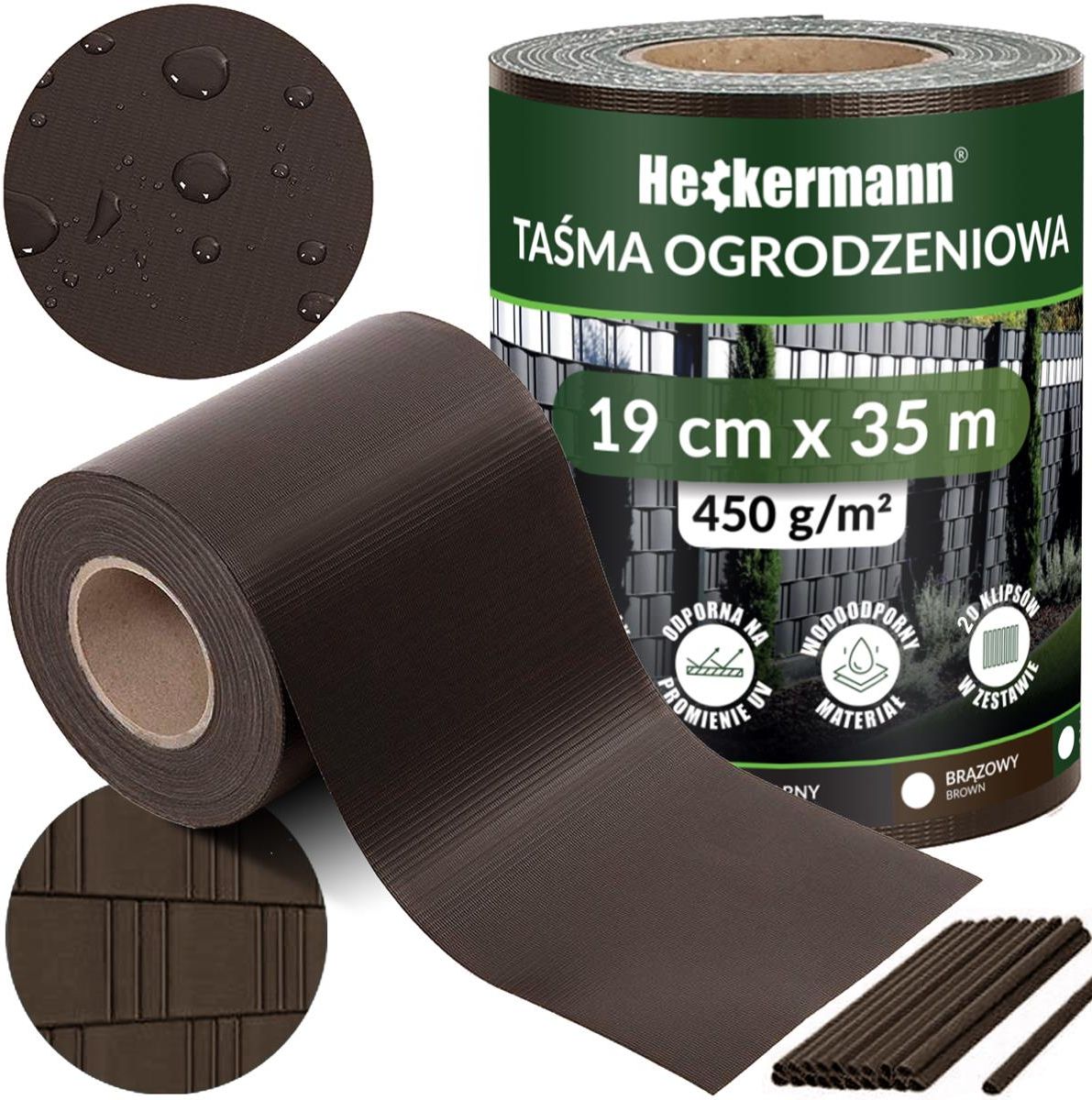 Heckermann Taśma Ogrodzeniowa 19cm 35m Brązowa Toruń