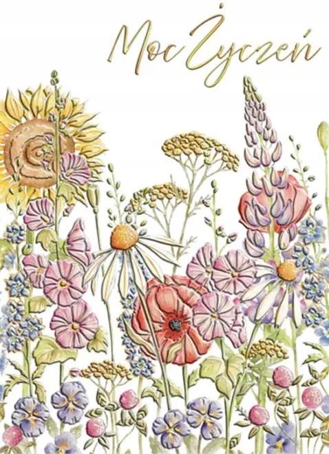 Karnet wydrukowano na wysokiej jakości papierze formatu A5. Karnet uszlachetniono złotą folią i tłoczeniem. W zestawie jest koperta.