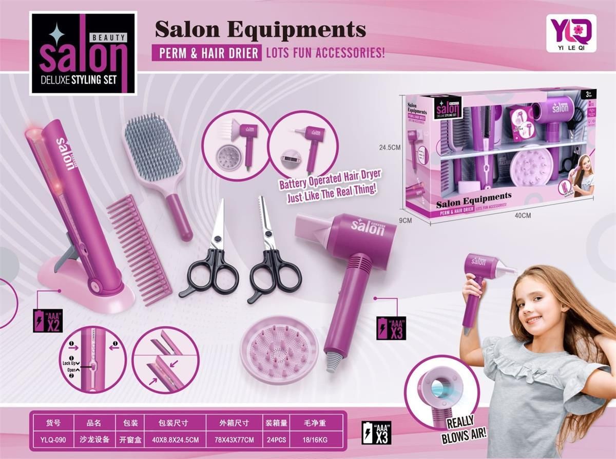 ZESTAW FRYZJERSKI dla dzieci suszarka SALON FRYZUR 9 elementów akcesoria Czy marzysz o tym, by Twoje dziecko mogło wkroczyć w świat wyobraźni, przygód i kreatywności? Teraz to możliwe, dzięki naszej niezwykłej kolekcji zabawek, które pozwalają małym odkrywcom wcielić się w dowolne role, rozwijając jednocześnie umiejętności społeczne, emocjonalne i intelektualne. Od teraz Twoje dziecko może wcielić się dorosłe osoby, wykonujące różne zawody, np. lekarza, panią sprzedawczynię czy mechanika. Twoje dziecko ma szansę stać się prawdziwą małą stylistką, dzięki naszym niezwykłym zabawkom! Zestawy do zdobienia paznokci czy robienia makijażu z bezpiecznymi akcesoriami pozwolą Twojemu dziecku wcielić się w rolę kosmetyczki, fryzjerki czy manicurzystki i pozwolą mu cieszyć się kreatywną zabawą pełną magii. Nasze zestawy zawierają różnorodne akcesoria, które rozbudzą wyobraźnię i rozwiną zdolności manualne, pozwolą każdej małej dziewczynce wykazać się kreatywnością. Zestawy do zdobienia paznokci i makijażu, zestawy fryzjerskie z suszarką to zabawki umożliwiające eksperymentowanie z wyglądem i wyrażaniem własnej osobowości. W skład zestawu wchodzą bezpieczne lakiery do paznokci, kolorowe cienie, pomadki, pędzle i inne akcesoria, dzięki którym można stworzyć niezliczoną ilość stylizacji. Sprawdź, co przygotowaliśmy dla Twojego dziecka! ZESTAW FRYZJERSKI dla dzieci + suszarka + akcesoria Są wśród nas małe fryzjerki? Jeśli tak, to mamy dla Was zestaw idealny. To doskonały pomysł na prezent dla małej dziewczynki, która chce stać się małą stylistką i bawić się w tworzenie wymyślnych fryzur. W zestawie Twoja Pociecha odnaleźć może szeroką gamę narzędzi niezbędnych w pracy fryzjera w tym suszarkę, prostownicę, nożyczki, grzebienie do włosów i inne akcesoria. Suszarka posiada dwustopniową regulację stopnia nawiewu, a podczas suszenia wydaje odgłosy jak prawdziwa. Prostownica posiada efekty świetlne oraz odgłosy dźwiękowe. Suszarka do włosów wydaje również odgłos suszenia i emituje strumień powietrza. Interaktywny, bogato wyposażony zestaw fryzjerski z suszarkąz wymiennymi dyszami i prostownicą do włosów na baterie to propozycja dla dzieci od 3-go roku życia. SPECYFIKACJA ✅ suszarka z wymiennymi nasadkami (dyfuzor i nasadka skupiająca), ✅ suszarka emituje strumień powietrza, ✅ suszarka posiada dwustopniową regulację stopnia nawiewu, ✅ suszarka wydaje odgłosy suszenia, ✅ prostownica posiada suwak do zamykania i otwierania, ✅ prostownica posiada oświetlenie, ✅ prostownica wydaje odgłosy charakterystyczne dla prostowania włosów, ✅ praktyczny stojak na suszarkę. WYPOSAŻENIE ☑️ suszarka do włosów, ☑️ wymienna dysza do suszarki z dyfuzorem, ☑️ wymienna dysza do suszarki z koncentratorem, nasadką skupiającą, ☑️ prostownica, ☑️ nożyczki, ☑️ nożyczki do degażowania, ☑️ grzebień, ☑️ szczotka do włosów, ☑️ stojak na suszarkę, ☑️ opakowanie. WYMIARY ✅ suszarka do włosów ok. 22 x 8,5 x 6 cm, ✅ suszarka z dyfuzorem ok. 22 x 12 x 10 cm, ✅ suszarka z nasadką skupiającą ok. 22 x 13 x 6 cm, ✅ prostownica zamknięta ok. 20 x 3 x 3,5 cm, ✅ prostownica otwarta ok. 20 x 3 x 6 cm, ✅ nożyczki ok. 14 x 6 x 0,5 cm, ✅ grzebień ok. 15 x 4 x 0,5 cm, ✅ szczotka do włosów ok. 18 x 6,5 x 2,5 cm, ✅ stojak na suszarkę ok. 13 x 5,5 x 8 cm, ✅ opakowanie ok. 40 x 25 x 9 cm. ZDZ.YLQ-090