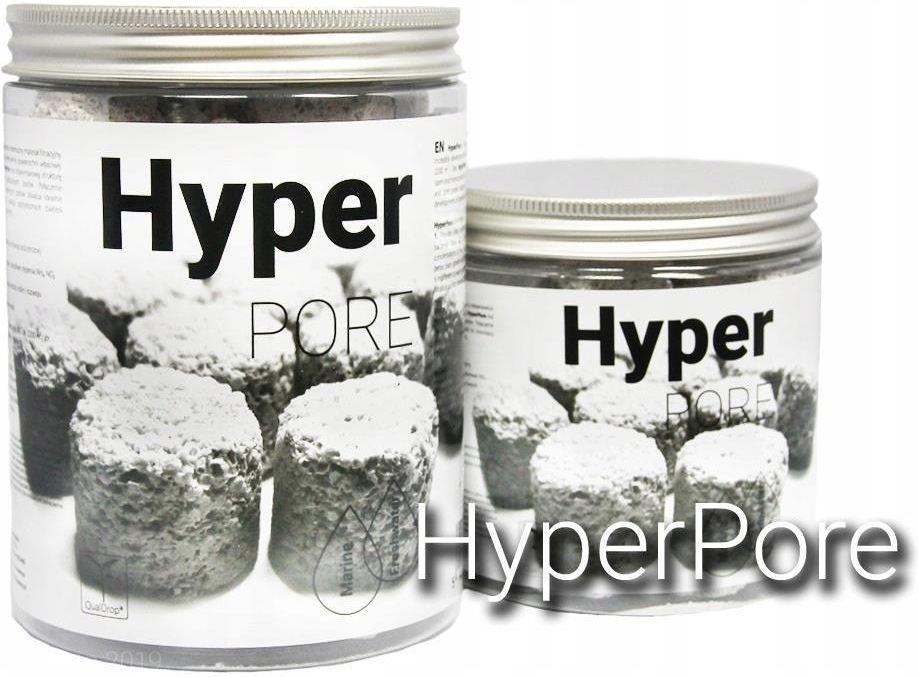 Qualdrop HyperPore 1000ml Ceramiczny Materiał Filtracyjny HyperPore to nowoczesny ceramiczny materiał filtracyjny o niesamowicie rozwiniętej efektywnej powierzchni właściwej BET ok. 2200 m2/litr. HyperPore ma trójwymiarową strukturę otwartych i wzajemnie połączonych czynnych biologicznie porów. HyperPore zawiera użytecznie, efektywne biologicznie pory o rozmiarach ok. 45 μm oraz 150 μm. Połączenie ogromnej powierzchni, obecności porów czynnych biologicznie oraz struktury otwartych porów stwarza idealnie warunki do kolonizacji i rozwoju pożytecznych bakterii nitryfikacyjnych i denitryfikacyjnych. HyperPore ma kształt waleca, o wymiarach: średnica ok. 25 mm i wysokości ok. 20 mm. Zalety HyperPore 1. Zapewnia idealne warunki do rozwoju pożytecznej flory bakteryjnej. 2. Pozwala szybko eliminować szkodliwe stężenia NH4, NO2 oraz redukować NO3 3. Przyczynia się do lepszego wzrostu roślin i rozwoju organizmów żywych. 4. Obojętny dla parametrów wody. 5. Usuwa zmętnienia. 6. Ogromna powierzchnia filtracyjna BET ok. 2200 m2/ litr. 7. Efektywne biologicznie pory o rozmiarach ok. 45 μm oraz 150 μm 8. Nadaje się do wody słodkiej i morskiej Sposób użycia: HyperPore należy przepłukać przed zastosowaniem. Wkład ceramiczny musi być umieszczony w koszach filtracyjnych za wkładami do czyszczenia mechanicznego. Na każde 100 l wody korzystnie jest użyć ok. 1 l złoża. Wkład ceramiczny nadaje się do płukania i wielokrotnego użytku. UWAGA! Nigdy nie należy czyścić ani wymieniać całej ilości złoża HyperPore w jednej operacji. W razie konieczności wymienić jednorazowo 30-50%. Nigdy nie czyścić zbyt rygorystycznie (kultury pożytecznych bakterii nie mogą zostać całkowicie zniszczone), w większości przypadków wystarczy zwykłe przepłukanie w wodzie spuszczonej ze zbiornika co kilka tygodni. Nie stosować do hodowli roślin i zwierząt przeznaczonych do konsumpcji i przetwórstwa spożywczego. Preparat przeznaczony do akwariów z rybami i roślinami ozdobnymi. Chronić przed dziećmi. Partie produkty mogą się różnić kolorem i jego odcieniem. Termin ważności: nieograniczony. Data produkcji jest jednocześnie numerem partii produkcyjnej. Pojemność: 1000 ml