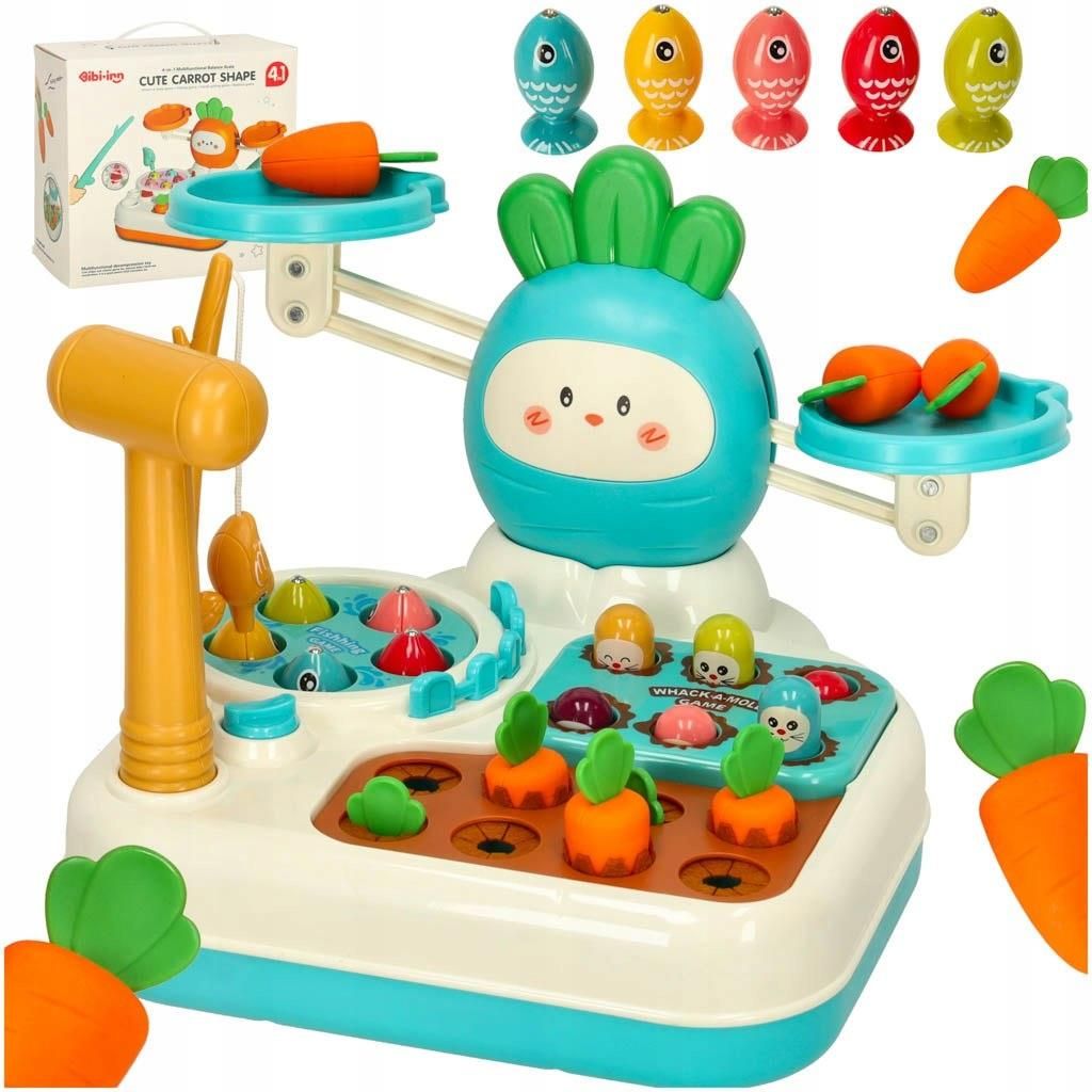 O naszej firmie: W naszym sklepie każdy znajdzie coś wyjątkowego i fascynującego dla swojego dziecka. Nasza misja to dostarczanie radości i inspiracji poprzez kreatywne, edukacyjne oraz rozrywkowe zabawki. Nie chcemy skupiać się tylko i wyłącznie na zabawkach dlatego w naszym asortymencie znajdziesz szeroki wybór gier, klocków, zestawów do tworzenia, artykułów do szkoły i innych produktów, które rozwijają wyobraźnię i umiejętności maluchów. ZABAWKA INTERAKTYWNA UROCZE MARCHEWKI 4W1 Przedstawiamy Urocze Marchewki – interaktywną zabawkę 4w1 w kolorze niebieskim, która zapewni Twojemu dziecku godziny fascynującej i edukacyjnej zabawy! To innowacyjny produkt, który łączy naukę z rozrywką, wspierając rozwój malucha w kluczowych obszarach. Dlaczego nasz produkt jest wyjątkowy? Wielofunkcyjność 4w1: Zabawka nie tylko bawi, ale i uczy! Dzięki czterem różnym funkcjom, Twoje dziecko może układać, sortować, ćwiczyć koordynację ruchową i rozwijać zmysły poprzez interaktywne elementy. To idealne połączenie nauki i rozrywki! Rozwój Zdolności Manualnych: Maluch może chwytać, układać i sortować kolorowe marchewki, co doskonale wpływa na rozwój motoryki małej. Zabawka wspiera koordynację ręka-oko, ćwiczy precyzję ruchów oraz wzmacnia zręczność. Nauka Kolorów i Kształtów: Zabawka uczy rozpoznawania różnych kolorów i kształtów. Twoje dziecko może rozwijać swoje zdolności poznawcze poprzez zabawę, jednocześnie zdobywając nowe umiejętności. Bezpieczna i Trwała: Wykonana z wysokiej jakości, nietoksycznych materiałów, Urocze Marchewki są bezpieczne dla najmłodszych. Solidna konstrukcja sprawia, że zabawka wytrzyma intensywną zabawę i posłuży przez długi czas. Interaktywność: Zabawka jest interaktywna – przyciski, dźwięki i światełka zapewniają dodatkową frajdę, stymulując zmysły dziecka i pobudzając jego ciekawość. SPECYFIKACJA Wiek: 18m+ Wymiary podstawy: 23 x 25 x 20 cm Długość marchewki: 6 cm Długość rybki: 4,5 cm Wymiary młotka: 7 x 15 cm Wymiary opakowania: 26 x 24 x 14 cm Zawartość zestawu: podstawaka zabawki z grami, waga, rybki x5, marchewki x8, wędka, młotek Kolor: niebieski Urocze Marchewki – Interaktywna Zabawka 4w1 w kolorze niebieskim to idealne rozwiązanie dla każdego malucha, który chce rozwijać swoje umiejętności w zabawie pełnej radości. Doskonały prezent, który przyniesie uśmiech na twarz dziecka! Nie zwlekaj! Zamów Urocze Marchewki już dziś i pozwól swojemu dziecku cieszyć się niesamowitą, interaktywną zabawą, która rozwija, uczy i inspiruje!