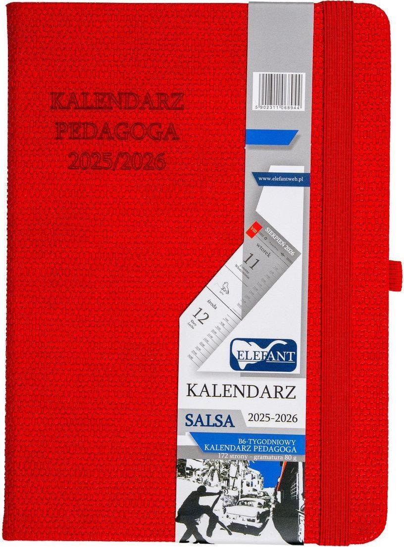 Kalendarz pedagoga 2025/26 B6 tyg. Salsa czerwony Toruń