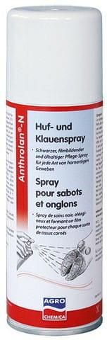 Anthrolan®-N Spray do kopyt i racic KERBL • czarny, powlekający spray pielęgnacyjny z olejem przeznaczony do kopyt, racic i innych zrogowaciałych tkanek• tworzy ochronną powłokę• chroni przed wilgocią i innymi szkodliwymi czynnikami (mocz, gnojówka itd.)• z powodu swojego intensywnego zabarwienia Anthrolan®-N nadaje się także do upiększania kopyt koni turniejowych i wystawowych