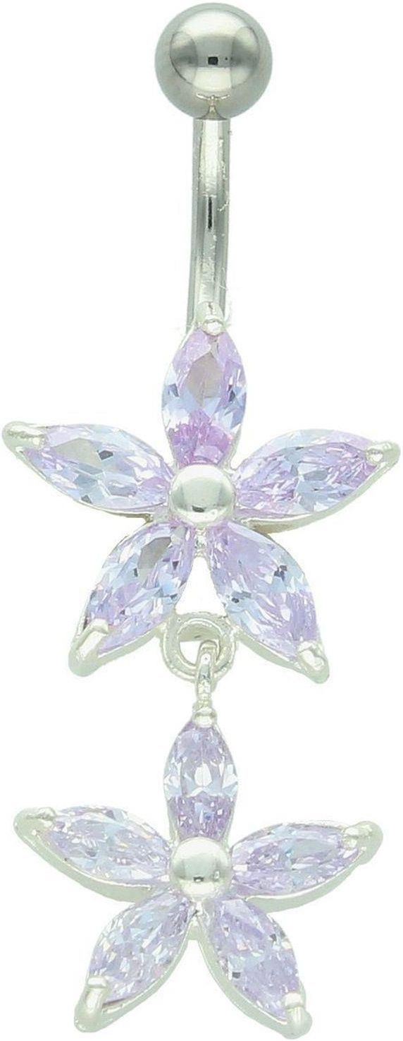 Kolczyk do pępka srebrny 925 – Kwiat z lawendowymi cyrkoniami | Biżuteria damska Toruń
