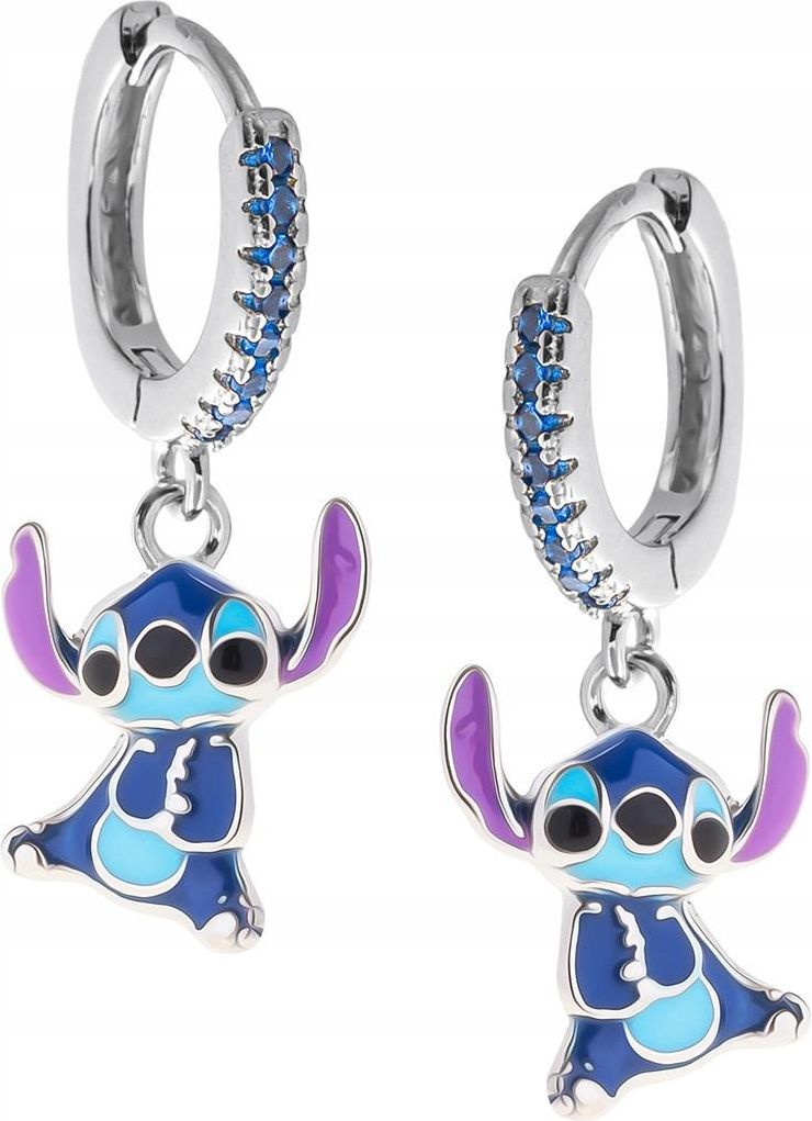 Kolczyki srebrne 925 z emalią siedzący Stich Kajdankowe Cyrkonie Toruń