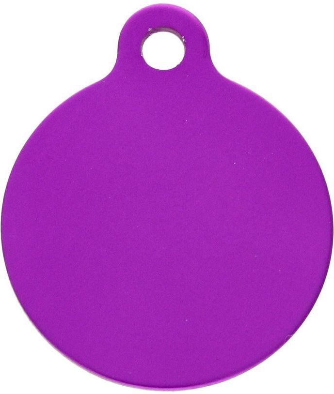 Kółko blaszka dla pupila fioletowa 2,5 cm z miejscem na grawer. Blaszka w formie adresówki, identyfikatora dla psa. Blaszka z miejscem na grawer. Na adresówce możemy wygrawerować np. imię psa i nr telefonu do właściciela. Blaszka w kolorze fioletowym odporna na warunki atmosferyczne i promienie UV. Okrągła blaszka w kolorze fioletowym z miejscem na grawer. Blaszka kółko o średnicy 2,5 cm.