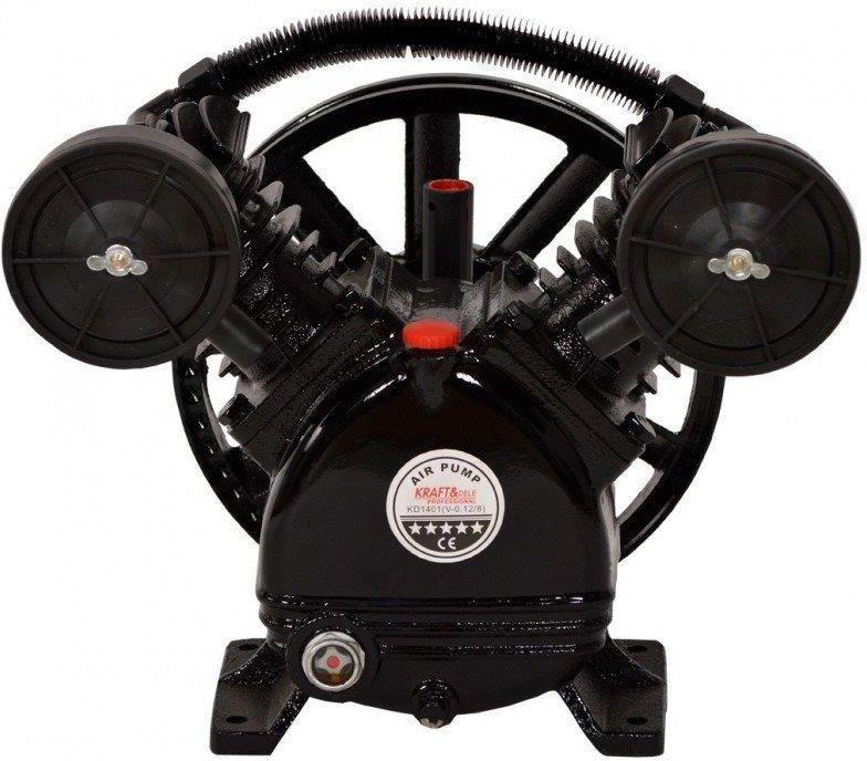 Sprężarka powietrza dwutłokowa cenionej marki Kraft&Dele. Wyposażona w koło pasowe, które jednocześnie chłodzi kompresor oraz boczną chłodnicę powietrza. Cylindry wykonane są z żeliwa. W zestawie: Sprężarka powietrza dwutłokowa KD1402 Instrukcja obsługi w języku polskim Oryginalne opakowanie