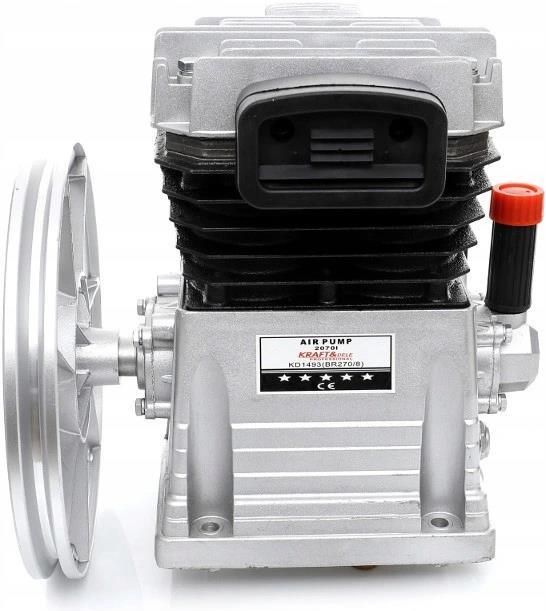 SPRĘŻARKA POMPA POWIETRZA 2200W KOMPRESOR 400 L/MIN 8 bar DWUTŁOKOWA 3KM Model: KD1492 Producent: KRAFT&DELE Sprężarka powietrza marki KRAFT&DELE to wysokiej jakości urządzenie sprężające powietrze przeznaczone do użytku domowego, w warsztacie oraz zakładzie pracy. Aluminiowo-żeliwna, sprawdzona konstrukcja spełnia wymogi nawet najbardziej wymagających użytkowników. DANE TECHNICZNE Typ urządzenia: sprężarka / pompa powietrza Wydajność: 400 L/min Prędkość obrotowa: 1020 RPM Zalecana moc silnika: 2,2 kW / 3 KM Ilość cylindrów: 2 Średnica cylindrów: 65 mm Ciśnienie: 8 bar Średnica koła: 265 mm Rozmiar podstawy: 150 x 182 mm Wysokość: 288 mm Waga: 13 kg RENOMOWANY PRODUCENT, ERGONOMICZNY DESIGN, NOWOCZESNE ROZWIĄZANIA - TO CECHY WYRÓŻNIAJĄCE PREZENTOWANY PRODUKT NA TLE KONKURENCJI WYSOKA JAKOŚĆ WYKONANIA Staranny dobór materiałów użytych do produkcji urządzenia wpłynęło na doskonałą trwałość i odporność na intensywną eksploatację przez długi okres. Sprzęt poradzi sobie nawet w najbardziej wymagających warunkach pracy. Konstrukcja wykonana jest z wysokiej jakości aluminium oraz żeliwa. WYDAJNA KONSTRUKCJA 2 równoległe tłoki o średnicy 65mm są w stanie wytworzyć ciśnienie na poziomie 8bar przy przepływie 400 l/min. Zalecana moc silnika przeznaczona do tej pompy to 2,2 kW / 3 KM. Specjalnie wyprofilowane, duże koło pasowe spełnia rolę wentylatora, chłodząc oraz poprawiając wydajność i trwałość sprężarki.