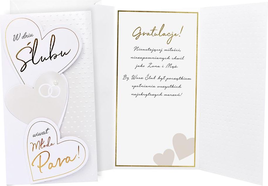 Kartka ślubna wykonana jest z trwałych materiałów.