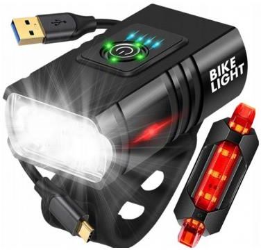 LAMPKA ROWEROWA PRZEDNIA + TYŁ LED DO ROWERU AKUMULATOROWA NA KIEROWNICĘ LAMPKA ROWEROWA LED DO ROWERU 1600lm PRZEDNIA METALOWA LAMPKA TYLNA LAMPKA MOCOWANIE NA KIEROWNICĘ 2x KABEL ŁADUJĄCY USB Produkt wysokiej jakości za niewielkie pieniądze ➡️ ZALETY Solidna obudowa z aluminium; Przycisk …