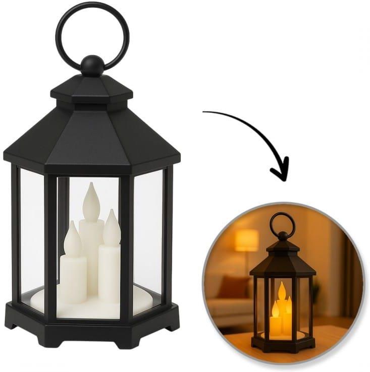 Lampion dekoracyjny LED z imitacją świec Stylowy czarny lampion z tworzywa sztucznego z realistyczną imitacją świec LED. Idealny do wnętrz i na zewnątrz– tworzy nastrojowe, ciepłe światło bez otwartego ognia. Lekki, trwały i bezpieczny w użytkowaniu. Specyfikacja: Materiał: tworzywo sztuczne, szkło …