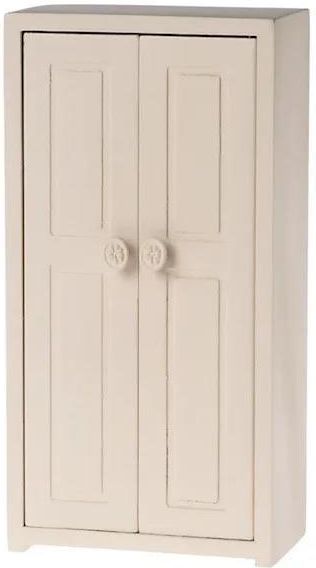 Kremowa szafa Maileg do przechowywania miniaturowych ubranek i akcesoriów. Elegancki design, solidne wykonanie, idealna do miniaturowych wnętrz.