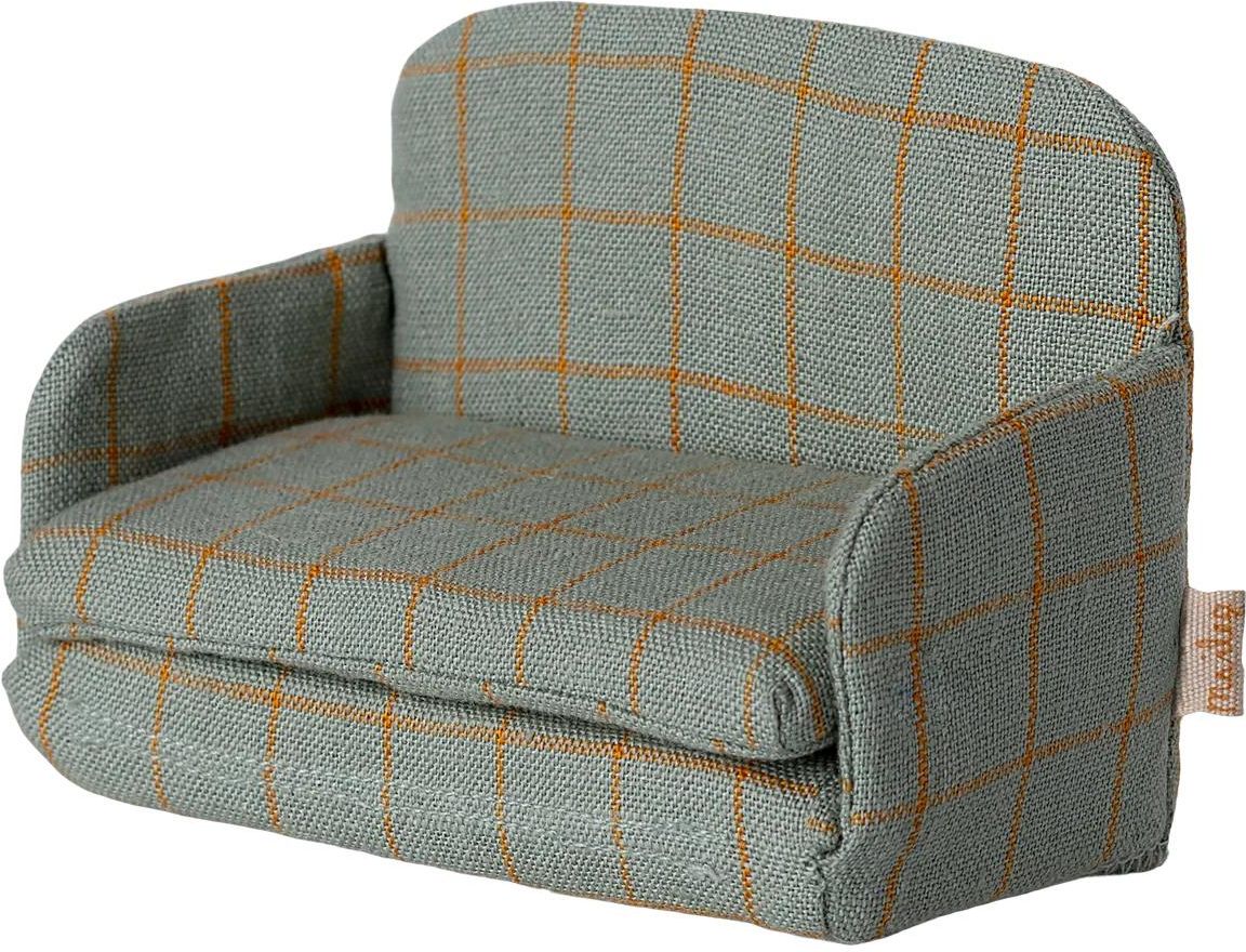 Maileg Sofa Bed – zielona rozkładana kanapa w kratkę dla myszek. Stylowy mebelek 2w1: wygodna kanapa w dzień i łóżko w nocy. Idealny dodatek do domku Maileg.