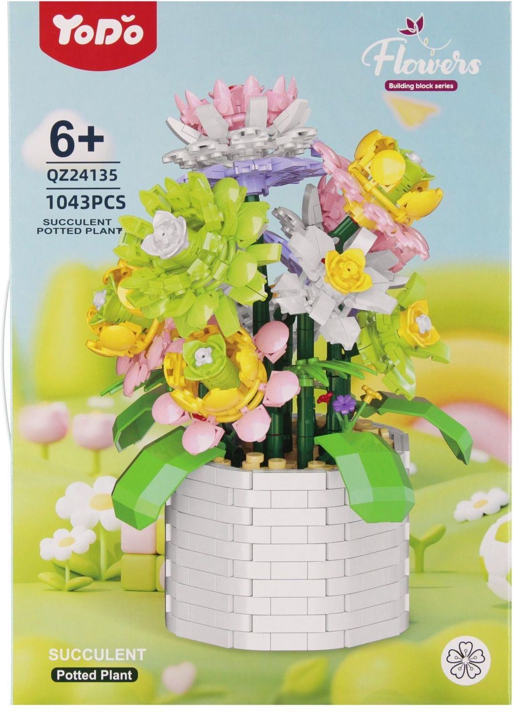Sukulenty z klocków konstrukcyjnych, KWIATY w doniczce, ZESTAW DIY 6+ Klocki konstrukcyjne Kwiaty 1043 szt. MEGA CREATIVE to wyjątkowy zestaw, który pozwala dzieciom tworzyć własny kolorowy ogród pełen roślin, bukietów i fantazyjnych kompozycji. Aż 1043 elementy rozwijają wyobraźnię, kreatywność i zdolności manualne najmłodszych konstruktorów. Różnorodność kształtów i kolorów umożliwia tworzenie klasycznych i oryginalnych aranżacji kwiatowych. Zestaw wykonany jest z trwałego i bezpiecznego plastiku, co zapewnia długotrwałą i bezpieczną zabawę. To doskonały pomysł na kreatywny prezent dla dzieci od 6. roku życia. ------------------------------------- kod produktu: 567481 Zestaw Sukulenty to chwila wytchnienia od codzienności, kreatywna zabawa i efektowna ozdoba, która przyciąga spojrzenia. NAJWAŻNIEJSZE CECHY PRODUKTU Rozwija wyobraźnię i kreatywność – wspiera zdolności manualne i logiczne myślenie. Różnorodne kształty i kolory – umożliwiają tworzenie niepowtarzalnych kompozycji. Bezpieczne i trwałe materiały – wykonane z wysokiej jakości plastiku. Separator do klocków - służy do łatwego rozdzielania połączonych klocków, szczególnie tych małych lub mocno zaciśniętych. 1043 elementy – ogromny zestaw do tworzenia kolorowych kwiatów i roślin. Dla dzieci 6+ – idealny prezent rozwijający zdolności i wyobraźnię. Wymiary po złożeniu - Wysokość: 33,8 cm, Szerokość: 23,6 cm Klocki są w pełni kompatybilne z innymi popularnymi zestawami klocków. GALERIA ZDJĘĆ