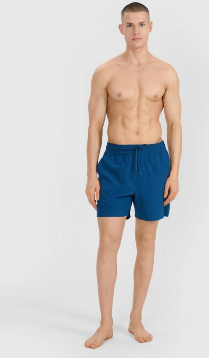 Spodenki plażowe męskie 4F zadbają o wygodę i nieograniczony zakres ruchów podczas codziennych, letnich aktywności, relaksu na plaży czy rekreacyjnego pływania. Syntetyczna tkanina o średniej gramaturze 130 gsm zapewnia trwałość i jest łatwa w pielęgnacji. Regularny krój nie ogranicza naturalnego zakresu ruchów, a szybkoschnące włókna wspierają odprowadzanie wilgoci z dala od ciała. Wewnętrzne majtki z przewiewnej siateczki zapewniają lepsze krycie. Elastyczny pas z wiązaniem na troki umożliwia precyzyjne dopasowanie do sylwetki, dlatego zapomnisz o spadaniu spodenek podczas dynamicznych skoków do wody. Spodenki z nogawkami sięgającymi do połowy uda zapewnią odpowiednie wsparcie podczas aktywności. Szorty posiadają trzy kieszenie (dwie po otwarte bokach i jedną na rzep z tyłu), co ułatwia przechowywanie podręcznych rzeczy, które chcesz mieć w zasięgu ręki. Szorty wybierane są zarówno przez plażowiczów, jak i zwolenników sportów wodnych. Dane techniczne:· Materiał główny: 94% poliester, 6% elastan· Podszewka: 100% poliester· Regularny krój - wygodne dopasowanie zapewniające swobodę ruchów· Gramatura 130 gsm - lekki i przewiewny materiał idealny na lato· Jednolita kolorystyka - uniwersalny design pasujący do wielu stylizacji· Wewnętrzne majtki z siatki - dodatkowe wsparcie i komfort· Długość przed kolano - optymalna osłona i swoboda ruchów· 2 otwarte kieszenie boczne - praktyczne miejsce na drobiazgi· Tylna kieszeń na rzep - bezpieczne przechowywanie małych przedmiotów· Wiązanie w pasie - możliwość regulacji dla idealnego dopasowania· Szybkoschnące włókna - skuteczne odprowadzanie wilgoci dla większego komfortu
