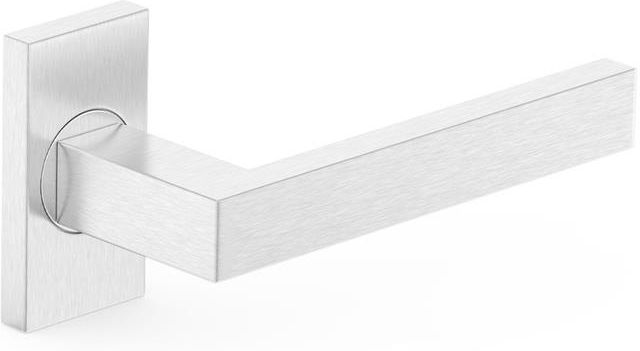Klamka drzwiowa na szyldzie prostokątnym. Szyld o grubości 10 mm Wymiar: 63x34 mm Materiał: stal nierdzewna (inox) Wykończenie: inox