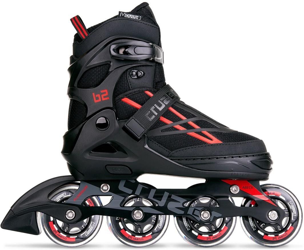 Movino Cruzer B2 czerwony (rozmiar 34-37) Rozmiar: 34 - 37 Liczba kół: 4 Materiał kół: PU Twardość kół: 82A Długość wkładki: 22 - 24 cm Średnica kółek: 76 mm Cechy i funkcje Movino Cruzer B2 - Red (rozmiar M) Wygodny system regulacji rozmiaru rolki – Movino Cruzer B2 posiada 4-stopniową regulację …