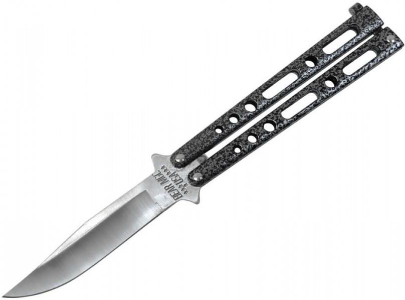 Wyprodukowany w Stanach Zjednoczonych, klasyczny nóż typu "motyl" z głownią clip-point wykonaną ze stali nierdzewnej 440. Montaż za pomocą śrub gwarantuje długą, bezawaryjną eksploatację. Ażurowa konstrukcja rękojeści jest za razem lekka i wytrzymała, a jej chropowata powierzchnia zapewnia dobry chwyt i pewne prowadzenie ostrza przy precyzyjnych pracach.