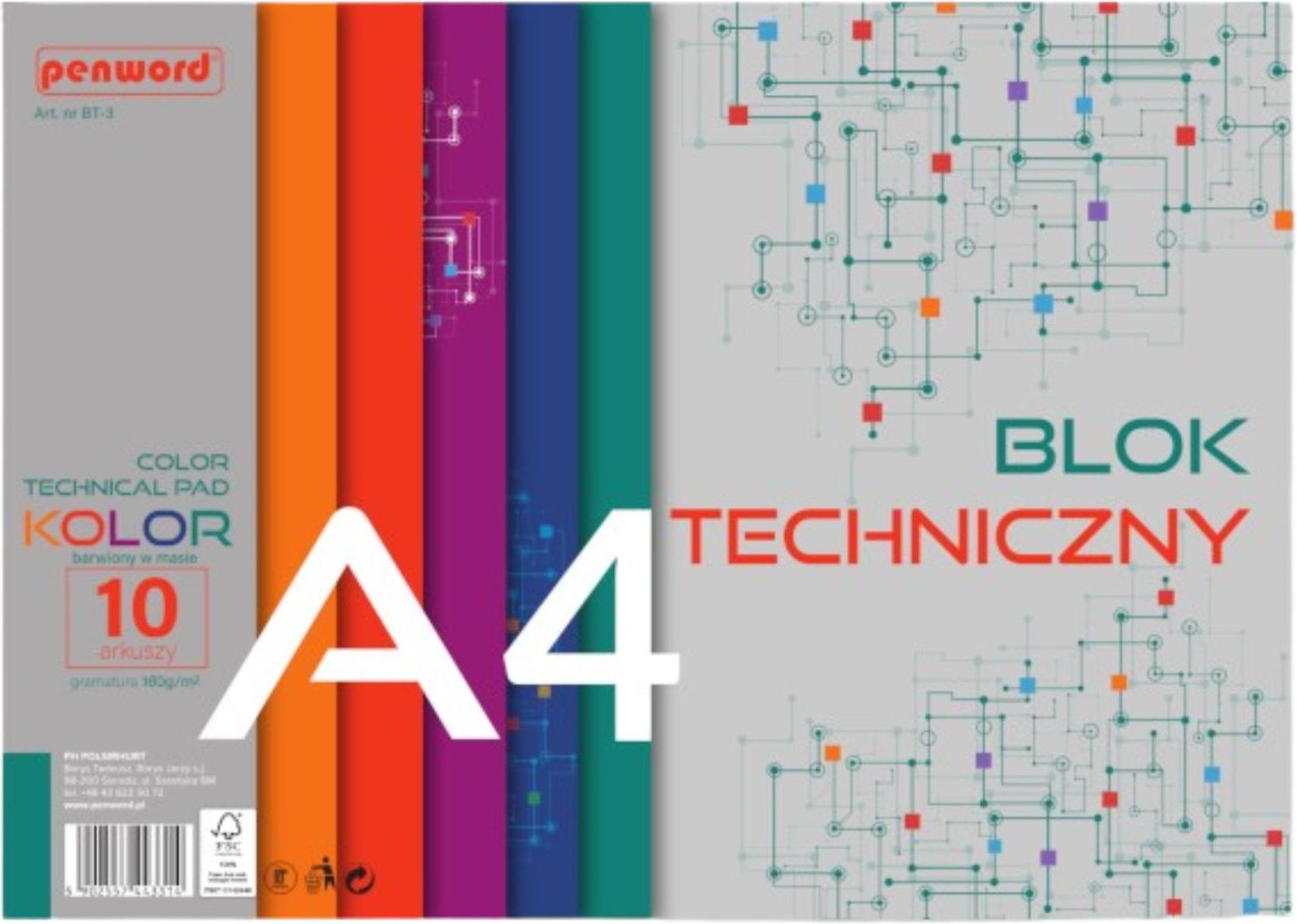 Penword Blok Techniczny Format A4 10 Kartek Kolorowych Wytrzymały 1szt. Toruń
