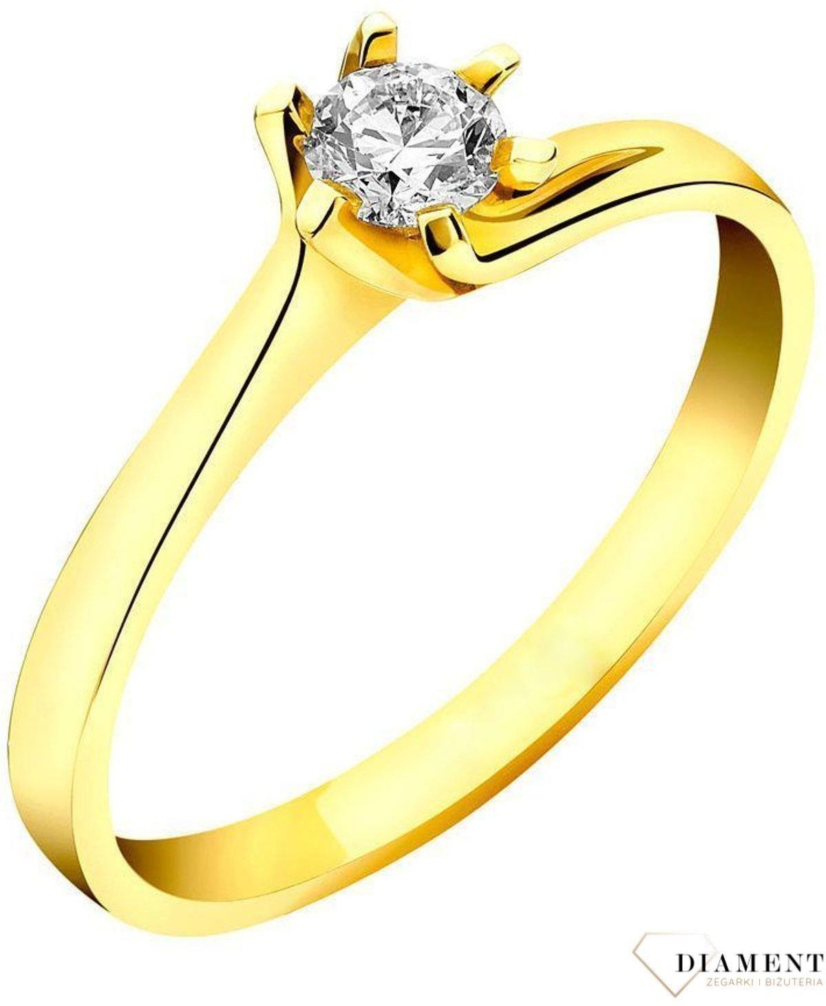 Pierścionek złoty DIAMENT żółte złoto, jeden diament, zaręczynowy Toruń