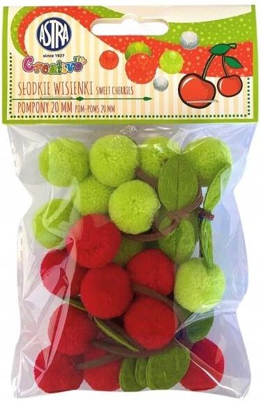 Pompony dekoracyjne słodkie wisienki 20 mm Astra Toruń