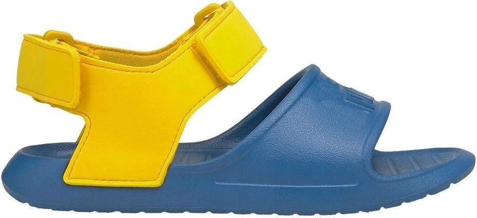 Sandały dla dzieci Puma Divecat v2 Injex PS Star 369546 07 Sandały dla dziecka Puma sprawdzą się podczas codziennego użytkowania. Lekka konstrukcja z pianki nie obciąża nadmiernie stóp. Syntetyczne paski z dwustrefowym zapięciem ułatwiają ubieranie. Fakturowana podeszwa cechuje się dobrą przyczepnością do podłoża. Model w kolorze niebiesko-żółtym. ...