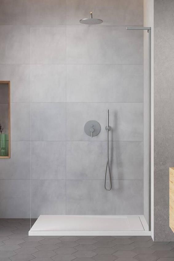 Kabina Modo SL Nikiel II 100x200 PRAWA RADAWAY Przedmiotem sprzedaży jest kabina typu "Walk-in" Modo SL Szczotkowany Nikiel II w szkle przejrzystym, w wersji prawej, bez brodzika. Charakteryzująca się prostotą, funkcjonalnością oraz minimalistycznym wzornictwem seria Seria Modo SL wyróżnia się dzięki nowemu, modnemu kolorowi szczotkowanego niklu. Metaliczny odcień szczotkowanych profili oraz wsporników sprawia, że kabiny Modo SL w tym wykończeniu są świetną propozycją do wnętrz, w których chcemy postawić na wyrafinowane niuanse. Doskonale wpisze się w łazienki nowoczesne jak i stylizowane na retro. Kabiny Walk-in najbardziej urzekają swoim pięknem gdy są zamontowane na brodziku zlicowanym z poziomem podłogi lub brodziku podpłytkowym. Dzięki wykorzystaniu stabilizatora kątowego L, konstrukcja kabiny nabiera dodatkowej lekkości. Powyższe zdjęcie jest tylko poglądowe nie odzwierciedla rzeczywistych wymiarów kabiny. Cechy kabiny Bezpieczne, hartowane szkło o grubości 8 mm. System mocowania do ściany za pomocą profili umożliwiających niwelację krzywizny ściany. Powłoka Easy Clean – optymalnie zabezpiecza przed zanieczyszczeniami i ułatwia utrzymanie kabiny w czystości. Stabilizator kątowy L - Sposób stabilizacji gwarantujący bezpieczeństwo konstrukcji i minimalistyczny wygląd. Produkt przyjazny dla osób niepełnosprawnych. Kabinę można zamontować zarówno na brodziku, jak i bezpośrednio na podłodze. Kabiny Walk-In Modo SL Szczotkowany Nikiel II w standardzie występują w szkle przejrzystym Szkło z powłoką Easy Clean to innowacyjne rozwiązanie, które sprawia, że szkło jest bardziej odporne na zabrudzenia i łatwiejsze do czyszczenia. Dzięki właściwościom hydrofobowym krople wody nie utrzymują się na powierzchni szkła, tylko spływają, nie pozostawiając osadów. Krople wody na szybie z powłoką Easy Clean nie utrzymują się na powierzchni, tylko spływają. Powłokę Easy Clean zaleca się odświeżać środkiem Glass Protector co 6 miesięcy. Zdjęcie nr 1 przedstawia szkło bez powłoki, Zdjęcie nr 2 przedstawia szkło z powłoką Easy Clean. Rysunek techniczny Szczegóły rysunku technicznego 1. Kabina w wersji lewej. 2. Kabina w wersji prawej. 3. Przedstawia szczegółowe wymiary kabiny prysznicowej Sposoby montażu kabiny Kupując kabinę prysznicową warto pamiętać, że istnieją różne sposoby montażu, pozwalające osiągnąć odmienne efekty estetyczne. Kabinę możemy zamontować na brodziku lub bezpośrednio na podłodze- z osią szyby bądź wymiarem zewnętrznym przypadającym wzdłuż granicy płytek. Na brodziku – wymiary A1 i A2 są wymiarami zewnętrznymi brodzika. Bez brodzika z zachowaniem wymiarów zewnętrznych kabiny – wymiary X1 i X2 są wymiarami do zewnętrznej krawędzi profilu. Bez brodzika z zachowaniem wymiarów do linii szyby – wymiary Y1 i Y2 są wymiarami do linii szyby kabiny Warianty nietypowe Visiosun UltraClear Satynowe Grafitowe Gradient Brązowe Mirror Master-Soft Warianty dodatkowe Relingowy wieszak na ręcznik.