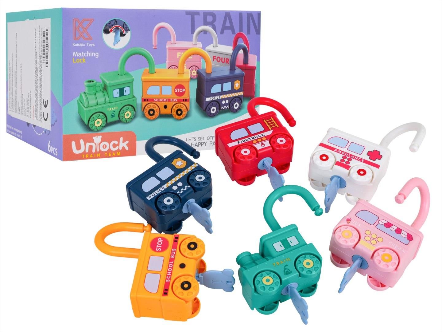 Opis Zestaw Pociąg z Wagonami Kłódki Edukacyjny, kolorowy pociąg z wagonikami w postaci kolorowych kłódek dla maluszków od osiemnastego miesiąca życia. Zabawka wykonana została z najlepszej jakości materiałów, bezpiecznych dla małych dzieci. Ten zestaw łączy w sobie zabawę i edukację. Zestaw składa się z 6 różnych pojazdów: lokomotywy, autobusu szkolnego, autka policyjnego, wozu strażackiego, karetki, furgonetki z lodami . Lokomotywa i autka są oznaczone numerkami od 0 do 5 oraz napisami angielskich nazw pojazdów (Train, School Bus, Police, Firetruck, Ambulance, Ice Cream). Dzięki temu dziecko zapoznaje się z liczbami oraz wyrazami w języku angielskim. Każdy samochodzik posiada od spodu dziurkę na kluczyk, w zestawie znajduje się 7 kluczy. Jeden klucz jest uniwersalny, otwiera wszystkie kłódki, pozostałe są przypisane do konkretnego pojazdu. Kluczyki są oznaczone numerkami, podobnie jak pojazdy co pomaga dzieciom rozwijać logiczne myślenie i uczy skojarzeń. Górną część kłódki można po otwarciu obracać o 360 stopni. Dzięki temu autka można ze sobą łączyć, tworząc kolorowy pociąg. Funkcje: dla dzieci od osiemnastego miesiąca, zestaw wykonany z najlepszej jakości materiałów, żywe kolory przyciągają wzrok dziecka i zachęcają do zabawy, zabawka rozwija zdolności manualne, kreatywność i wyobraźnie, uczy dopasowywania, rozwija logiczne myślenie, maluszek poznaje liczby i nazwy w języku angielskim. Wymiary klucz ok. 6,5 cm x 3,7 cm x 0,3 cm, pojazd ok. 7 cm x 6 cm x 3,7 cm, lokomotywa z wagonikami ok. 52 cm x 9 cm x 4 cm, opakowanie ok. 14,3 cm x 12,8 cm x 9,5 cm. Zawartość zestawu - 6 pojazdów, - 7 kluczy