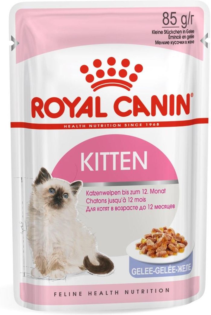 ROYAL CANIN Kitten Instinctive w galaretce karma mokra w galaretce dla kociąt do 12 miesiąca życia Okres odsadzania i zmiany diety z pokarmy płynnego na stały to jeden z najważniejszych etapów w życiu kota. Wybór karmy, która pobudzi apetyt kociąt i dostarczy im wszystkich niezbędnych składników pokarmowych, jest kluczowy. Karma charakteryzuje się optymalnym profilem składników pokarmowych, dlatego jest instynktownie wybierana przez koty, ponieważ przy jej tworzeniu uwzględniono takie parametry jak smak, zapach, konsystencję i teksturę. Karma ROYAL CANIN® Kitten Instinctive w galaretce dostarcza wszystkich niezbędnych składników pokarmowych, sprzyja prawidłowemu rozwojowi szkieletu oraz pokrywa wysokie potrzeby energetyczne kociąt. Zalety: • Wspomaganie układu immunologicznego • Łatwe do gryzienia • Instynktowny wybór Karma ROYAL CANIN® Kitten Instinctive w galaretce dostarcza wszystkich niezbędnych składników pokarmowych, sprzyja prawidłowemu rozwojowi szkieletu oraz pokrywa wysokie potrzeby energetyczne kociąt. Odporność wzrasta, ale układ immunologiczny jest nadal bardzo wrażliwy. Karma ROYAL CANIN Kitten Instinctive wzmacnia naturalne mechanizmy obronne organizmu kocięcia dzięki opatentowanemu kompleksowi współdziałających przeciwutleniaczy, składającemu się z witaminy E, C, tauryny i luteiny. Niewielkie kawałki w galaretce ułatwiają pobieranie pokarmu zarówno kociętom, jak i kotkom. Mając na uwadze preferencje żywieniowe kotów, karma ROYAL CANIN® Kitten Instinctive jest dostępna także w formie kawałków w sosie oraz smakowitego pasztetu. Ponadto występuje również w formie suchej, w postaci krokietów