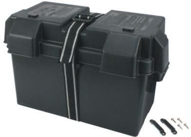 Bezpieczna obudowa do akumulatorów wymiary zewnętrzne (DxSxW): 448x250x270; W obudowie można umieścić akumulatory:l 1 x 12V/100Ahl 4 x 12V/17Ah Wymiary (szer x gł x wys) [mm]: 450 x 250 x 275 Do obudowy trzeba dodać odpowiednie wiązki z bezpiecznikami w zależności od liczby i rodzaju akumulatora