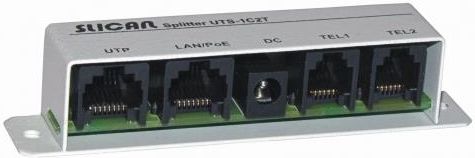Urządzenie zawiera 2 gniazda typu RJ45 oraz 2 gniazda typu RJ11 co pozwala podłączyć komputer i 2 telefony jednym kablem UTP. Dodatkowo pozwala "wstrzyknąć" zasilanie dla urządzeń zasilanych z PoE. Musi być stosowany po obydwu stronach kabla. Wymiary: 22x22x102mm.