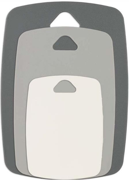 Zestaw 3 desek do krojenia z tworzywa SDB-7 • Wysoka jakość materiału. Nasz zestaw desek do krojenia został wykonany z trwałego, wysokiej jakości tworzywa, które zapewnia długotrwałe użytkowanie. • Wyjątkowa odporność. Solidna konstrukcja sprawia, że deski są odporne na zużycie i uszkodzenia, nawet przy intensywnym użytkowaniu. • Funkcjonalne otwory do zawieszenia. Każda deska posiada wygodny otwór do zawieszenia, co ułatwia przechowywanie i oszczędza miejsce w kuchni. • Łatwe w czyszczeniu. Deski są proste w utrzymaniu czystości – można je myć w zmywarce, co zapewnia higienę i oszczędza czas. Dane techniczne: • 35 x 25 x 0,6 cm • 30 x 20 x 0,5 cm • 20,3 x 15 x 0,4cm