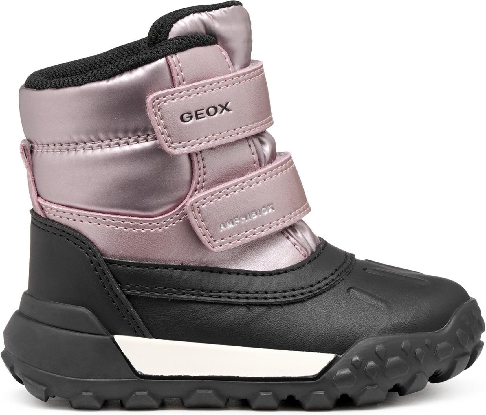 Buty Śniegowce dla Dzieci Geox B Trekkyup B ABX Rose B566MC Różowe Symbol: GE242-a Kolor: Różowy / Czarny Rozmiar: 25 (16.7 cm) Wiecej rozmiarów i kolorów znajdziesz na pozostałych aukcjach. Opis produktu Dziecięce śniegowce Geox Trekkyup to idealne buty na zimowe spacery i zabawy na śniegu. Wyższa cholewka buta za kostkę wykonana została ze skóry ekologicznej i materiału, co zapewnia trwałość i nowoczesny wygląd. Miękka, syntetyczna wyściółka oraz wełniana wkładka gwarantują ciepło i komfort w chłodne dni. Technologia Amphibiox chroni stopy przed wilgocią dzięki wodoodpornej i oddychającej membranie, umieszczonej w podeszwie i wokół stopy. System Geox Respira dba o odpowiednią cyrkulację powietrza, zapobiegając przegrzewaniu się stóp podczas intensywnych zabaw. Praktyczne zapięcie na rzep umożliwia szybkie i wygodne zakładanie obuwia nawet przez najmłodszych. Gumowa podeszwa zapewnia doskonałą przyczepność na śliskich, zimowych nawierzchniach, zwiększając bezpieczeństwo dziecka. Galeria zdjęć