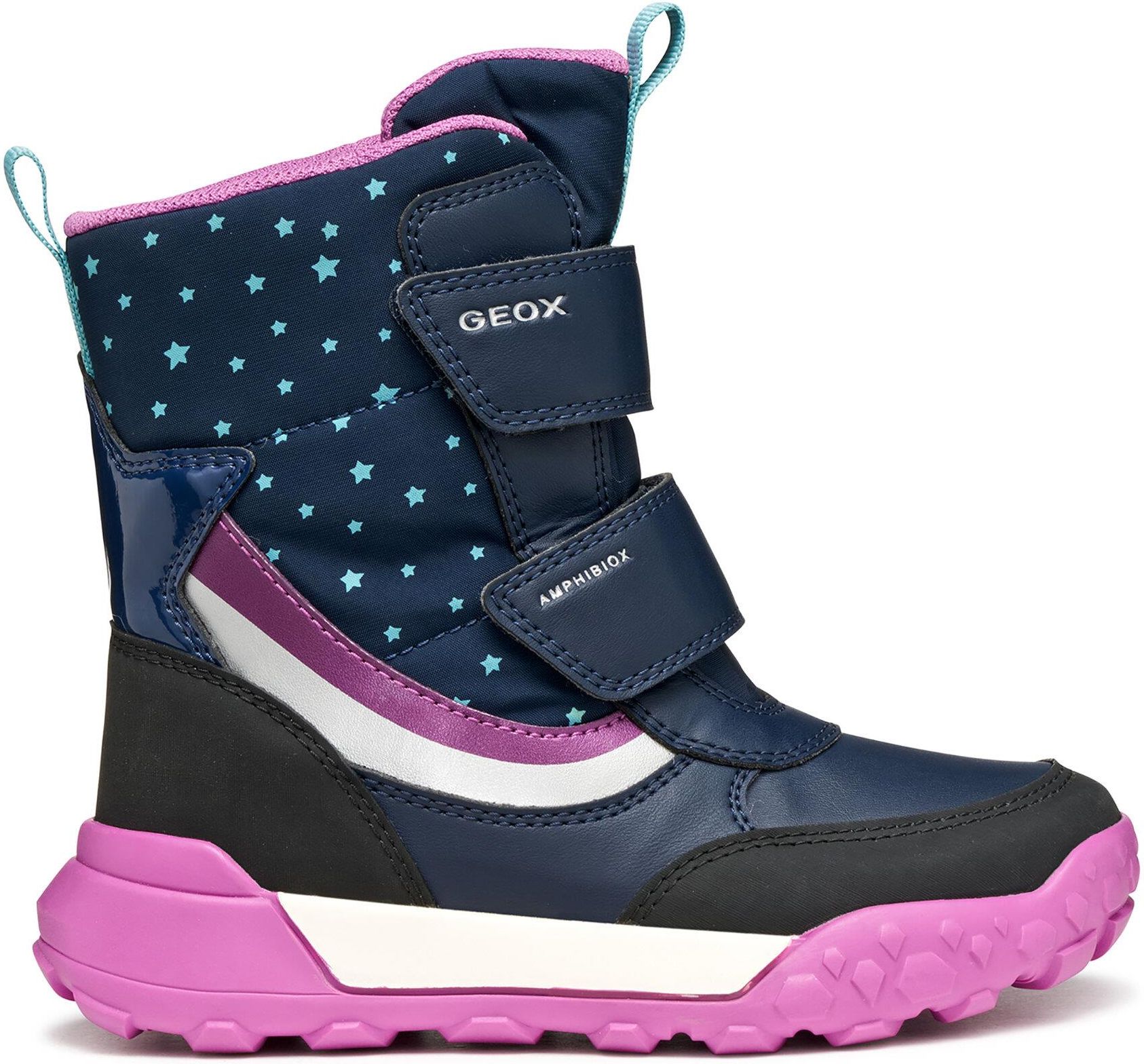 ŚNIEGOWCE DZIEWCZĘCE GEOX TREKKYUP Model: J56M7A_NP SKU: 6304 Kod producenta: J56M7A Płeć: Dziewczynki Marka: GEOX Kraj pochodzenia: Włochy Rodzaj zapięcia: rzepy Podeszwa: tworzywo | antypoślizgowa | Geox Respira | oddychająca Wkładka: perforowana | z izolacją termiczną Podszewka: gruby kożuszek/membrana wodoszczelna Geox Amphibiox Kolor: niebieski | granatowy | różowy Wierzch: skóra ekologiczna | materiał tekstylny | materiał syntetyczny Śniegowce dziewczęce, zaprojektowane z myślą o aktywnościach na świeżym powietrzu i sezonowych eksploracjach. Model Trekkyup wykonanyz jest z drukowanego nylonu i skóry ekologicznej w granatowo-fioletowej kolorystyce, co gwarantuje zarówno wytrzymałość, jak i niezawodność. Trekkyup ABX oferuje najwyższą wodoodporność, zapewniając suchość stóp dzieci i niezawodną ochronę podczas przygód na świeżym powietrzu, nawet w deszczu i śniegu. Kod produktu: J56M7A0MNBCC4269 Cechy: Maksymalna wodoodporność i oddychalność zapewniają doskonałą ochronę nawet podczas ulewnego deszczu. Ochrona przed zimnem dzięki doskonałej izolacji termicznej. Szybkie i łatwe zakładanie. Ciepłe wnętrze; Wzmocnione palce i pięta. Zapięcie na rzepy; Wyjmowana wkładka. Producent: Geox S.p.a Via Feltrina Centro 16, 31044 Montebelluna (TV), Italy, Tabela rozmiarów: r.28 - 17,7cm r.29 - 18,cm r.30 - 19 cm r.31 - 19,7cm r.32 - 20,4cm r.33 - 21cm r.34 - 21,7cm 35 - 22,cm r.36 - 22,5cm r.37 - 23,7cm