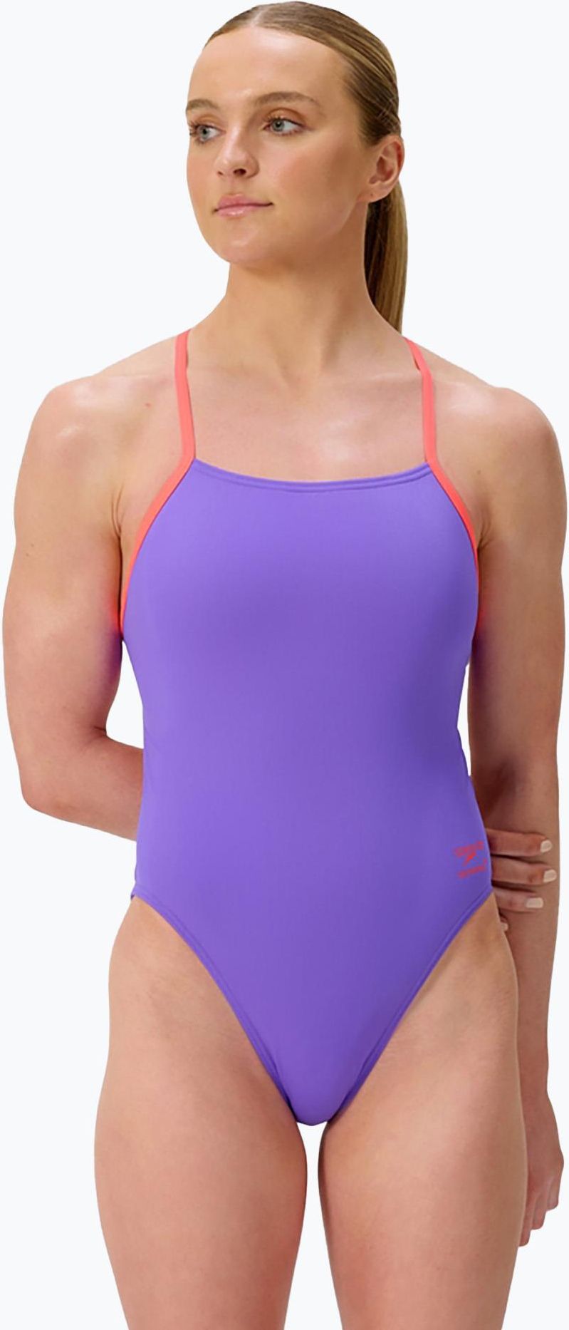 Strój pływacki jednoczęściowy damski Speedo FL Solid Tie Back indigo glow/picton blue to idealne rozwiązanie dla kobiet poszukujących niezawodnego stroju do intensywnych treningów pływackich. Wykonany z trwałego połączenia poliestru i politereftalanu butylenu (PBT), zapewnia dużą odporność na …
