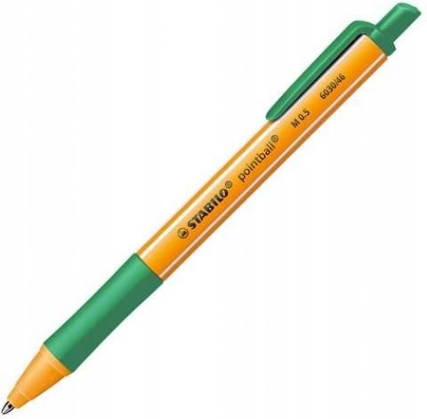DŁUGOPIS AUTOMATYCZNY STABILO POINT ZIELONY Automatyczny długopis Stabilo pointball z wymiennym wkładem. Pomarańczowa obudowa z charakterystycznymi białymi paskami wykonana jest w 79% z plastiku pochodzącego z recyklingu. Gumowany uchwyt w kolorze wkładu gwarantuje wysoki komfort pisania. Wymienny wkład w rozmiarze XXL o grubości linii 0,5 mm. Cena dotyczy 1 sztuki.