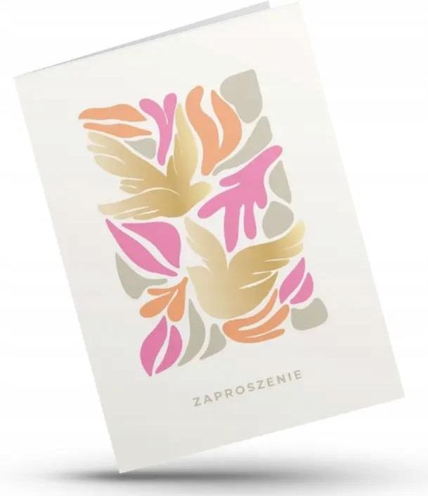 Wyjątkowe zaproszenie z motywem dwóch gołębi otoczonych kwiatami.Subtelne odcienie złota, różu, pomarańczy i beżu zostały podkreślone eleganckim złoceniem wykonanym metodą hot-stampingu, które nadaje kartce niepowtarzalnego blasku i szlachetności. Dzięki temu zaproszenie wygląda wyjątkowo w świetle – zarówno naturalnym, jak i sztucznym – podkreślając uroczysty charakter każdej okazji.Kartka została wykonana z ekologicznego papieru premium o gramaturze 300 g, który zapewnia trwałość i eleganckie wykończenie. Wewnątrz znajduje się miejsce na własny tekst zaproszenia, co pozwala na pełną personalizację. W zestawie znajduje się również biała koperta, idealnie dopasowana kolorystycznie i stylistycznie do projektu.Wymiary: 11.2 x 15.8 cm