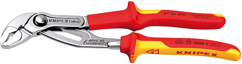 KNIPEX SZCZYPCE NASTAWNE COBRA VDE 87 26 250 T CECHY PRODUKTU: Szczypce z zintegrowanym zaczepem izolowanym do zamocowania zabezpieczenia przed upadkiem w trakcie pracy Regulacja poprzez dosunięcie bezpośrednio do chwytanego przedmiotu: szybka, bezpieczna i wygodna obsługa Precyzyjna regulacja: …