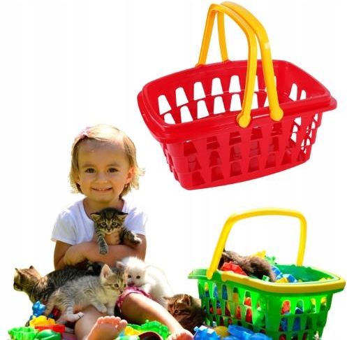 Koszyczek firmy Technok Produkt zapewni sporo zabawy i nauki oraz pomoże rozwinąć logiczne myślenie, uczy wykonywania domowych obowiązków, pobudzając wyobraźnię dziecka i ćwiczy koordynację ruchową. Produkt bezpieczny dla dziecka. Wykonany z najwyższej jakości wytrzymałego tworzywa, nietoksycznego, bezwonnego. Dostępne kolory: czerwony, żółty, różowy, niebieski.