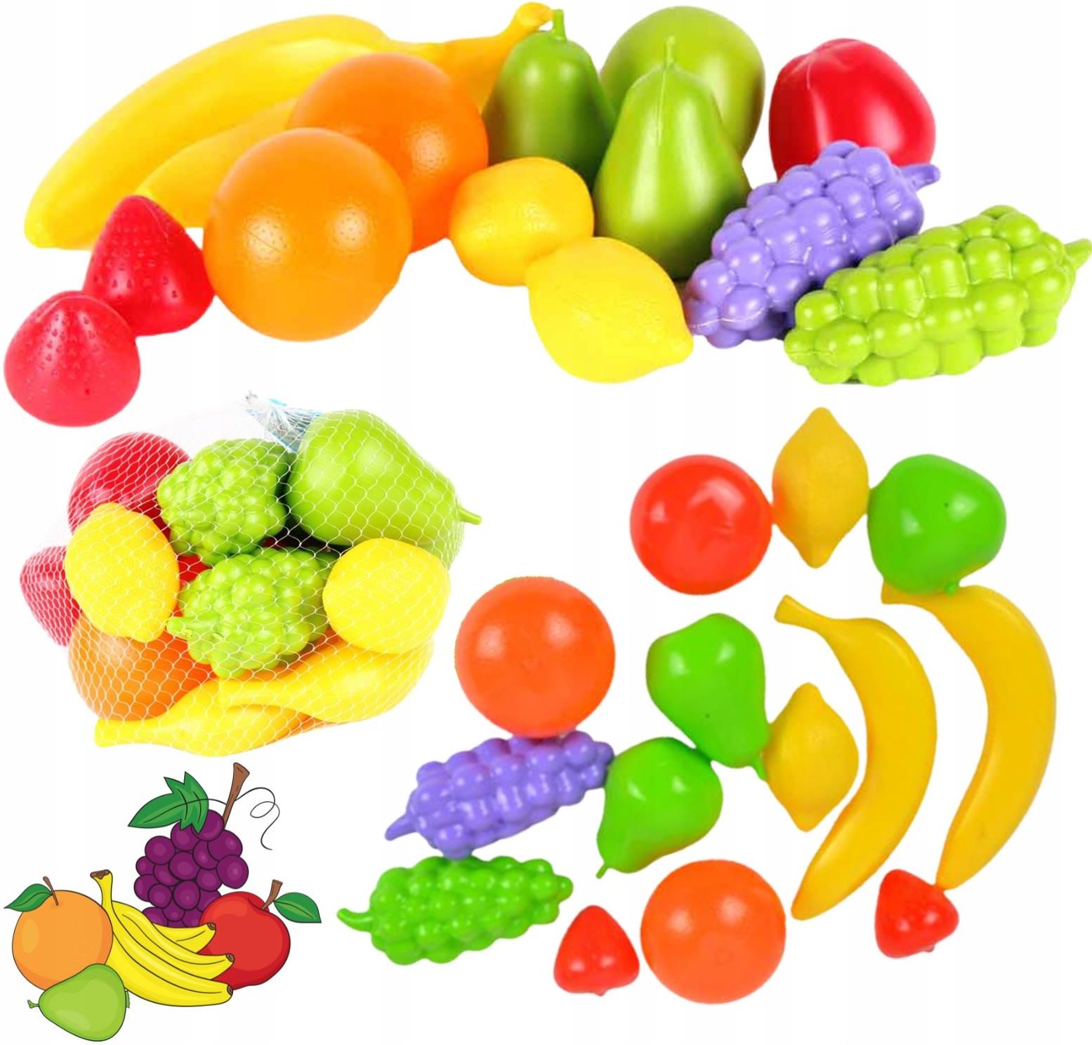 Zestaw owoców Z zestawem owoców maluch będzie mógł wejść w fascynujący świat kulinarnych przygód! Jest to idealny dodatek do kuchni każdego małego kucharza. Zestaw obejmuje szeroką gamę popularnych owoców, takich jak banany, cytryny, winogrona, jabłka, gruszki, pomarańcze i truskawki. Dzieci mogą uczyć się eksperymentować z różnymi kombinacjami smakowymi. Każdy owoc w zestawie posiada autentyczny wygląd oraz intensywne kolory, co pomaga w nauce rozpoznawania barw. Różnorodność kształtów owoców rozwija zdolności poznawcze dzieci. Dzięki zestawowi maluchy mogą bawić się w odgrywanie ról związanych z gotowaniem, a także rozwijać wiedzę na temat zdrowego odżywiania. Zestaw świetnie sprawdzi się podczas zabawy z przyjaciółmi lub rodziną. Dzieci mogą gotować i tworzyć pyszne potrawy dla swoich bliskich, rozwijając tym samym zdolności kulinarne i wymyślać nowe przepisy. Zastosowanie nieszkodliwych materiałów gwarantuje bezpieczną i długotrwałą zabawę. Łatwość w obsłudze i bezpieczne wykonanie pozwala nawet najmłodszym cieszyć się wciągającą zabawą. Zestaw zawiera 14 różnych owoców Zestaw owoców pozwala na rozpoczęcie smakowitej przygody kuchennych eksperymentów, który wciągnie maluchy do kulinarnego świata i zachęci do twórczego oraz kreatywnego myślenia. Wymiary: 15x25x10 cm