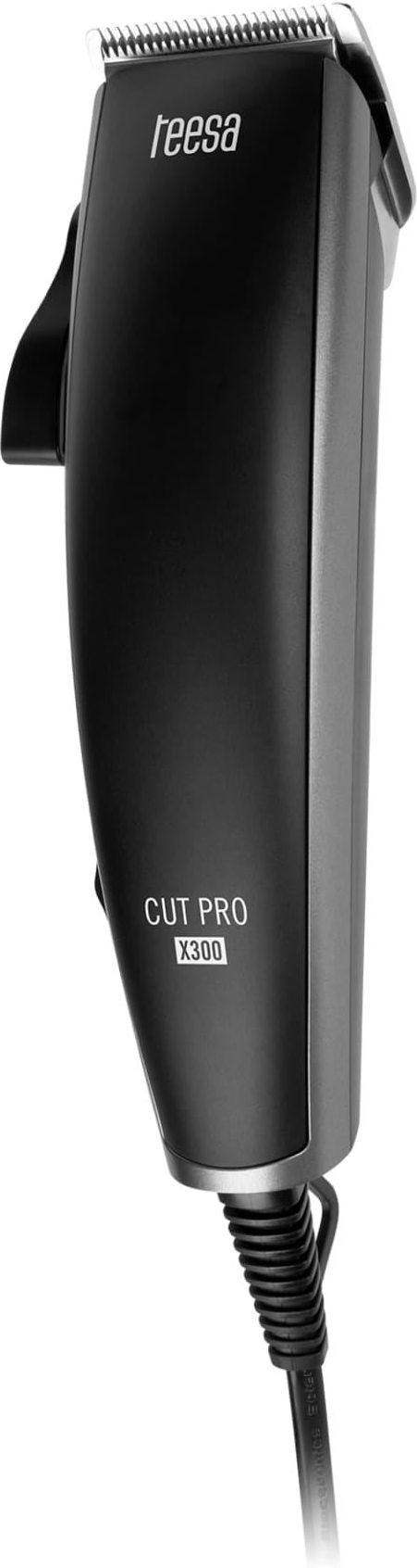 Maszynka do strzyżenia włosów Teesa CUT PRO X300 TEESA Maszynka do włosów Teesa CUT PRO X300 Nie lubisz długich kolejek do fryzjera? Maszynka do włosów CUT PRO X300 powoli Ci uzyskać efekt porównywalny do cięcia u profesjonalisty bez wychodzenia z domu. Precyzyjne ostrze Dzięki szerokiej funkcjonalności maszynki do strzyżenia włosów w szybki sposób stworzysz wymarzoną fryzurę. Gwarancją sukcesu jest wysokiej jakości nożyk ze stali nierdzewnej, który umożliwia idealne wystylizowanie włosów. Regulacja długości cięcia Dla jeszcze większej precyzji, maszynka Teesa CUT PRO X300 wyposażona została dodatkowo dźwignię cieniowania z czterostopniową regulacją noża - 0,8 mm, 1,6 mm, 2,5 mm oraz 3,3 mm. Wybierz swoją długość i zacznij samodzielnie stylizować fryzurę! 4 nasadki grzebieniowe To, co z pewnością dodatkowo ułatwi Ci domowe strzyżenie włosów, to dołączone do zestawu cztery nasadki grzebieniowe – 3 mm, 6 mm, 9 mm oraz 12 mm – dzięki którym z łatwością dobierzesz odpowiednią dla siebie długość cięcia. Swoboda użytkowania Najlepsza maszynka do samodzielnego strzyżenia włosów, by sprostać oczekiwaniom, powinna mieć odpowiednią moc i być gotowa do użycia kiedy tylko będziesz jej potrzebować. Dlatego Teesa CUT PRO X300 to model przewodowy o mocy 7 W. Co ważne, urządzenie posiada przewód o długości 1,8 m, z uchwytem do zawieszenia, by zapewnić Ci maksymalną swobodę i komfort w czasie użytkowania. Profesjonalny zestaw Maszynka do strzyżenia Teesa posiada jeszcze jedną ważną zaletę. W zestawie znajdziesz niezbędne akcesoria takie jak grzebień, nożyczki, pędzelek do czyszczenia i olejek do konserwacji, które ułatwią Ci stylizowanie fryzury w domowych warunkach. ---------- GŁÓWNE CECHY ---------- 4 nasadki grzebieniowe (3, 6, 9, 12 mm) Nożyk ze stali nierdzewnej Uchwyt do zawieszenia ---------- DANE TECHNICZNE ---------- Szerokość nożyka: 43 mm Ustawienia długości: 0,8 mm, 1,6 mm, 2,5 mm, 3,3 mm Poziom głośności: =<70 dB Moc: 7 W Zasilanie: 230 – 240 V~; 50 Hz Waga: 395 g Wymiary: 169 x 61 x 32 mm Długość przewodu: 1,8 m W zestawie: nakładka ochronna, 4 nasadki grzebieniowe, grzebień, nożyczki, pędzelek do czyszczenia, olejek do konserwacji Maszynka do włosów Teesa CUT PRO X300 Nie lubisz długich kolejek do fryzjera? Maszynka do włosów CUT PRO X300 powoli Ci uzyskać efekt porównywalny do cięcia u profesjonalisty bez wychodzenia z domu. Precyzyjne ostrze Dzięki szerokiej funkcjonalności maszynki do strzyżenia włosów w szybki sposób stworzysz wymarzoną fryzurę. Gwarancją sukcesu jest wysokiej jakości nożyk ze stali nierdzewnej, który umożliwia idealne wystylizowanie włosów. Regulacja długości cięcia Dla jeszcze większej precyzji, maszynka Teesa CUT PRO X300 wyposażona została dodatkowo dźwignię cieniowania z czterostopniową regulacją noża - 0,8 mm, 1,6 mm, 2,5 mm oraz 3,3 mm. Wybierz swoją długość i zacznij samodzielnie stylizować fryzurę! 4 nasadki grzebieniowe To, co z pewnością dodatkowo ułatwi Ci domowe strzyżenie włosów, to dołączone do zestawu cztery nasadki grzebieniowe – 3 mm, 6 mm, 9 mm oraz 12 mm – dzięki którym z łatwością dobierzesz odpowiednią dla siebie długość cięcia. Swoboda użytkowania Najlepsza maszynka do samodzielnego strzyżenia włosów, by sprostać oczekiwaniom, powinna mieć odpowiednią moc i być gotowa do użycia kiedy tylko będziesz jej potrzebować. Dlatego Teesa CUT PRO X300 to model przewodowy o mocy 7 W. Co ważne, urządzenie posiada przewód o długości 1,8 m, z uchwytem do zawieszenia, by zapewnić Ci maksymalną swobodę i komfort w czasie użytkowania. Profesjonalny zestaw Maszynka do strzyżenia Teesa posiada jeszcze jedną ważną zaletę. W zestawie znajdziesz niezbędne akcesoria takie jak grzebień, nożyczki, pędzelek do czyszczenia i olejek do konserwacji, które ułatwią Ci stylizowanie fryzury w domowych warunkach.