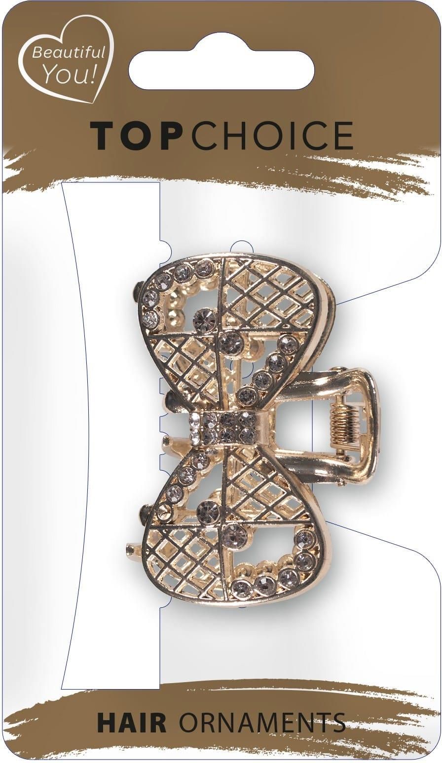 Klamra do włosów łączy w sobie oryginalny design i wygodę użycia. Bogate zdobienie w postaci „kryształków” i „perełek” nadaje jej niepowtarzalnego charakteru i szyku. Doskonale sprawdzi się do eleganckich stylizacji na co dzień, jak i na większe wyjścia. Mniejszy rozmiar klamry pozwoli na stworzenie fryzury z krótszych włosów. Wykonanie z wysokiej jakości materiałów oraz stabilna metalowa konstrukcja zapewnią długotrwałe użytkowanie. Dostępna w pięciu wariantach. Kolor: złoty Długość: 4 cm Szerokość: 3 cm Materiał: metal, ABS