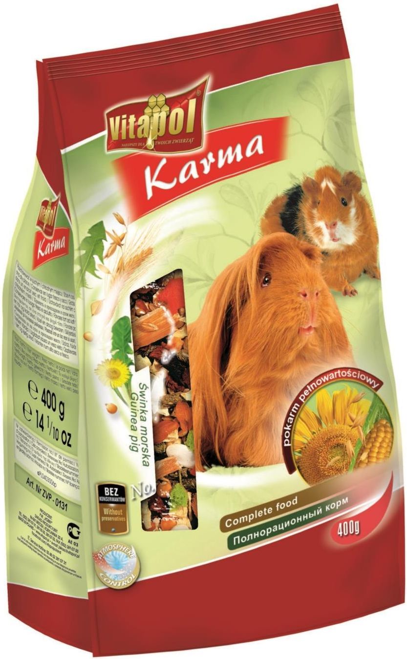 VITAPOL POKARM DLA ŚWINKI 400g W WORKU Pokarm i przysmaki dla małych zwierząt odgrywają kluczową rolę w zapewnieniu zdrowia i dobrego samopoczucia zwierząt domowych. Dobrze dobrana dieta jest niezbędna dla ich prawidłowego rozwoju i kondycji. W tej kategorii znajdziesz produkty, które pomogą Ci w wyborze najlepszego pożywienia dla Twojego pupila. Szczególnie ważne jest, aby odpowiednio dbać o żywienie świnek morskich, które są niezwykle wrażliwe na składniki pokarmowe. Przeznaczenie "VITAPOL POKARM DLA ŚWINKI 400g W WORKU" to produkt stworzony specjalnie dla świnek morskich. Jest to karma, która dostarcza wszystkich niezbędnych składników odżywczych, które są kluczowe dla zdrowia tych gryzoni. Dzięki odpowiedniemu składowi, ten produkt jest idealnym codziennym posiłkiem dla Twojego pupila. Skład Karma od Vitapol, czyli VITAPOL POKARM DLA ŚWINKI, to starannie opracowana mieszanka, w której znajdziesz: wyszukane nasiona, granulat, ekstrudaty, warzywa (marchew, burak, pasternak, seler, koper), owoce bogate w witaminę C. Taki skład zapewnia pełnowartościowe pożywienie, które wspiera zdrowie świnek morskich. Owoce, takie jak porzeczka, dostarczają dodatkowo mikroelementów oraz witamin, podczas gdy warzywa przyczyniają się do poprawy ogólnego stanu zdrowia. Dawkowanie Zalecana codzienna porcja karmy wynosi od 35 do 50 gramów, w zależności od wagi i wieku zwierzęcia. Dzięki temu możesz dostosować ilość pokarmu do indywidualnych potrzeb swojego pupila, co jest niezwykle ważne dla ich zdrowia. Opakowanie "VITAPOL POKARM DLA ŚWINKI" dostępny jest w praktycznym i zgrzewanym worku o wadze 400 gramów. Taki sposób pakowania zapewnia długą świeżość produktu oraz wygodę w przechowywaniu. Zalety Oto kluczowe zalety, które wyróżniają ten pokarm dla świnek morskich:Naturalny skład i urozmaicony skład sprawiają, że karma jest chętnie pobierana przez zwierzęta. Oto więcej korzyści, które oferuje ten produkt: naturalny skład - bogaty w minerały i kompleks witamin, urozmaicony skład - różnorodność składników sprawia, że karma jest chętnie pobierana przez zwierzęta, wsparcie zdrowia - witamina C i inne składniki odżywcze dla wsparcia odporności, zdrowe zęby - twarda struktura składników wspomaga naturalne ścieranie zębów, łatwość w podawaniu - karma w formie granulatu jest wygodna w użyciu, przysmaki naturalne - dodatkowe smakołyki w składzie, które zachęcają do jedzenia. Karma "VITAPOL POKARM DLA ŚWINKI" to doskonały sposób na zapewnienie Twoim świnkom morskim zdrowej i smacznej diety. Wybór tego produktu to inwestycja w zdrowie i szczęście Twojego pupila.
