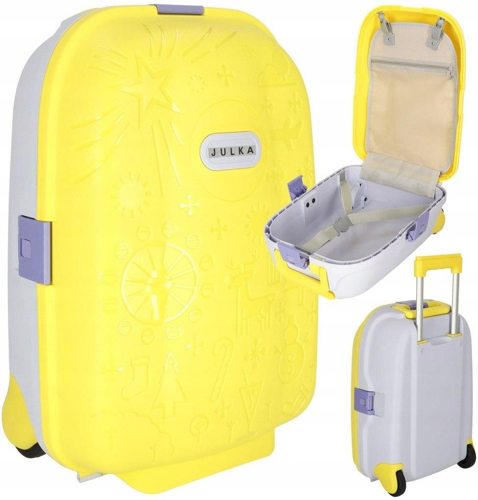 Walizka podróżna kabinowa dla dzieci na kółkach LED bagaż podręczny z imieniem żółty WALIZKA PODRÓŻNA DLA DZIECI NA KÓŁKACH BAGAŻ PODRĘCZNYŻÓŁTY Żółta walizka dla dzieci duża pojemność - dzięki dwóm dużym przegrodom, bez problemu pomieści wszystkie dziecięce rzeczy wygoda użytkowania - za sprawą dwóch kółek i wysuwanej rączki prowadzenie walizki jest niezwykle wygodne doskonała jakość - materiały użyte do stworzenia walizki są doskonałej jakości, aby maluch mógł jej używać podczas wielu podróży Parametry techniczne Kolor: Żółty Tworzywo: plastik Waga walizki: 2,2kg Świecące koła LED Wymiary walizki (z uchwytem i kółkami): 43 cm x 30 cm x 19 cm Średnica kółek: 7 cm Wysokość rączki od ziemi: 84 cm Wymiary opakowania: 31,5 cm x 44,5 cm x 22 cm Zawartość zestawu Walizka Naklejki Własna walizka to idealne rozwiązanie dla każdego małego podróżnika gotowego na nowe przygody! Żółty kolor i ciekawe wzorki przykują uwagę dziecka, a może i nawet zachęcą do samodzielnego spakowania się. W zestawie dodatkowo naklejki umożliwiające podpisanie bagażu. Cała konstrukcja walizki została wykonana z trwałych i solidnych materiałów, zapewniających niezawodność nawet podczas najbardziej ekscytujących przygód. Wnętrze walizki podzielone jest na dwie pojemne komory. Dodatkowo wyposażona jest w dwa, gumowe kółka, stopkę, dzięki której walizki się nie przewróci oraz wysuwaną rączkę dla wygodnego korzystania. Produkt zapakowany w kartonowe opakowanie.