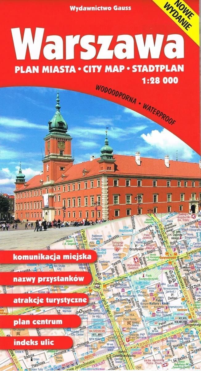 Legenda w języku: polskim, angielskim oraz niemieckim. Na planie zaznaczono m.in.: - sieć dróg i ulic wraz z numeracją, ulice jednokierunkowe, - linie kolejowe ze stacjami, linię metra ze stacjami, parkingi, - dworce autobusowe, linie autobusowe i tramwajowe, stacje paliw, - obiekty sakralne, grodziska, - informacje turystyczne, ambasady, konsulaty, szpitale, - urzędy pocztowe, poczty, posterunki policji, jednostki straży pożarnej, - hotele, inne miejsca noclegowe, - kina, teatry, filharmonie, muzea, supermarkety, - parki narodowe, rezerwaty przyrody, kopce. Publikacja zawiera także: - indeks ulic, - plan centrum w skali 1:15 000. Warszawa. Plan miasta w skali 1:28 000 – Wersja wodoodporna Odkryj stolicę Polski z pomocą szczegółowego planu miasta Warszawy w skali 1:28 000. Ta wodoodporna publikacja to idealny towarzysz dla turystów oraz mieszkańców, którzy pragną w pełni poznać uroki Warszawy. Dla kogo jest ta książka? Turyści odwiedzający Warszawę Mieszkańcy stolicy poszukujący szczegółowych informacji o mieście Osoby planujące wycieczki i zwiedzanie Miłośnicy historii i kultury Warszawy Podróżnicy korzystający z transportu publicznego Co zyskasz dzięki tej publikacji? Dokładny plan miasta z oznaczeniem dróg, ulic i numeracji Informacje o liniach kolejowych, metra oraz transportu publicznego Wskazówki dotyczące obiektów turystycznych, sakralnych i kulturalnych Indeks ulic ułatwiający szybkie odnalezienie lokalizacji Plan centrum w skali 1:15 000 dla lepszej orientacji w sercu miasta Kluczowe tematy i obszary Transport publiczny: linie autobusowe, tramwajowe i kolejowe Obiekty użyteczności publicznej: szpitale, urzędy, poczty Turystyka: hotele, kina, teatry, muzea Przyroda: parki narodowe, rezerwaty, kopce Bezpieczeństwo: posterunki policji, jednostki straży pożarnej O Wydawcy Wydawnictwo Gauss to renomowany wydawca specjalizujący się w publikacjach związanych z mapami oraz przewodnikami turystycznymi. Dzięki ich doświadczeniu i pasji do geografii, każdy produkt jest starannie opracowany, aby dostarczyć czytelnikom rzetelnych informacji.