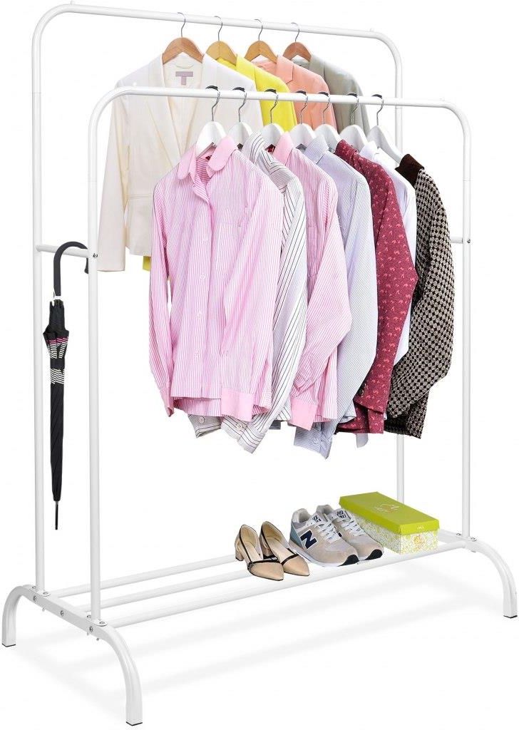 Wieszak do garderoby podwójny BENI biały Model: Beni | Kolor: biały Beni to podwójny wieszak garderobiany z półką na buty. Duża pojemność gwarantuje zawieszenie sporej ilości odzieży i dodatków. Dodatkowa dolna półka bez problemu pomieści kilka par butów i przechowa najpotrzebniejsze rzeczy. …