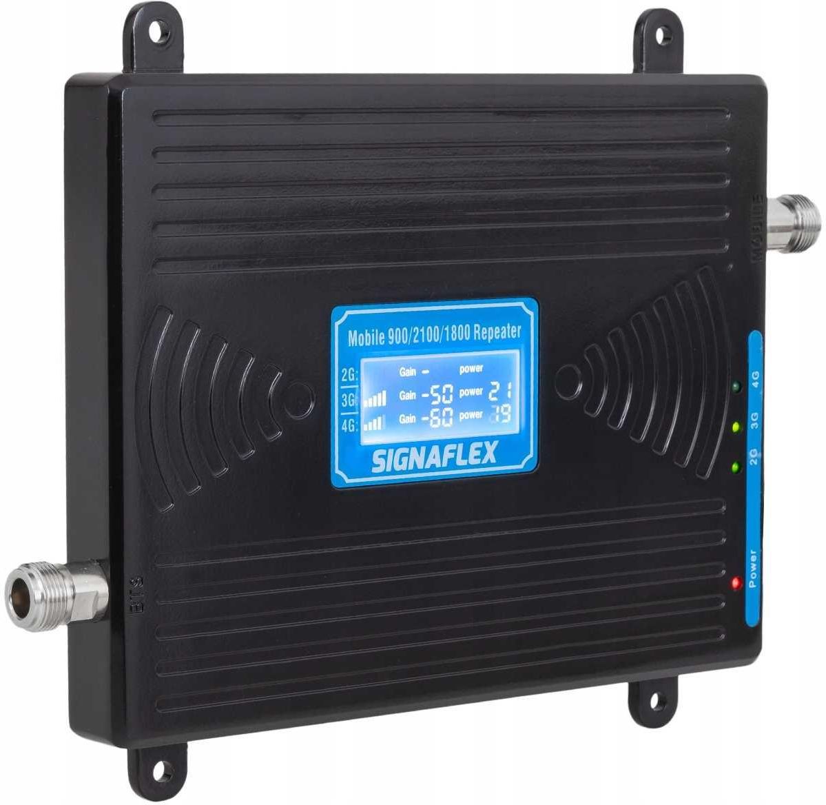 Wzmacniacz GSM/3G/4G LTE BLACK LCD Wzmacniacz GSM/3G/4G LTE BLACK LCD do 5000 m² UWAGA ⚠ Na niniejszej aukcji oferowany jest sam wzmacniacz, bez anten, które są wymagane do prawidłowej pracy. Wzmacniacz ten dedykujemy użytkownikom posiadającym już instalację antenową lub osobom, które chcą skompletować zestaw wedle własnych preferencji. W przypadku zainteresowania doborem anten do danego wzmacniacza sugerujemy wybranie jednego z gotowych zestawów dostępnych na innych naszych aukcjach. Do czego służą wzmacniacze GSM/EGSM/3G/4G LTE? Nie masz zasięgu w telefonie komórkowym lub Internetu od operatora sieci komórkowej w domu, biurze, firmie, hali produkcyjnej? Słaby sygnał uniemożliwia Tobie swobodną rozmowę przez telefon komórkowy, a brak Internetu powoduje nerwowość, niepokój oraz powoduje stratę finansową? Mamy wszystko, aby rozwiązać Twój problem. Posiadamy w chwili obecnej największy na Allegro wybór gotowych zestawów przekraczający liczbę ponad 200. Zestawy przygotowane przez nas są bardzo łatwe w montażu, przewody zazwyczaj mają zarobione wtyki. Zwiększa zasięg w kilku* telefonach jednocześnie! Nie musisz martwić się o słaby zasięg. Nasz sprzęt zapewnia obsługę wielu urządzeń równocześnie. * Maksymalna liczba równoległych połączeń obsługiwana przez wzmacniacz GSM jest dostępna w specyfikacji. Mnogość zastosowań Wzmacniacze GSM można z powodzeniem instalować w mieszkaniu, w domu jednorodzinnym, a także w firmie, na hali targowej, czy gospodarstwie rolnym. Specyfikacja techniczna wzmacniacza Pasmo pracy: Uplink 890-915 MHz, 1710-1785 MHz, 1920-1990 MHz, 2500-2570 MHz, Downlink 935-960 MHz, 1805-1880 MHz, 2110-2180 MHz, 2620-2690 MHz Zysk: Uplink ≥ 70 dBi, Downlink ≥ 75 dBi Impedancja wej./wyj.: 50 Ω na złącze Moc wyjściowa: 70 ~ -40dBm / FA (1,23 MHz) Pokrycie: 5000 m² Niezawodność: standard GB6993-86 Kompatybilność elektromagnetyczna: standard ETS300 694-4 Diody sygnałowe: zasilanie włączone (czerwona), przekazywanie sygnału (zielona) Złącza antenowe: Ant. zewnętrzna - gniazdo "N+złączka", Ant. wewnętrzna - gniazdo "N+złączka" Zasilanie: AC 110~230V 45~55Hz Zasilacz: DC 12 V (zasilacz w komplecie) Wymiary: 25x19x2.2 cm Kolor: Czarny Temperatura pracy: od -10˚C do 60˚C Wilgotność: od 5% do 95% - bez kondensacji Samodzielny montaż oraz używanie wzmacniaczy GSM/UMTS/LTE zwanych również repeaterami przez osoby nieuprawnione jest prawnie zabronione. Prawo do instalacji tego typu urządzeń posiadają wyłącznie operatorzy sieci komórkowych. Niezastosowanie się do powyższego może zostać uznane, jako czyn podlegający grzywnie, a w przypadku działania w sposób uporczywy, karze ograniczenia albo pozbawienia wolności do lat 2.